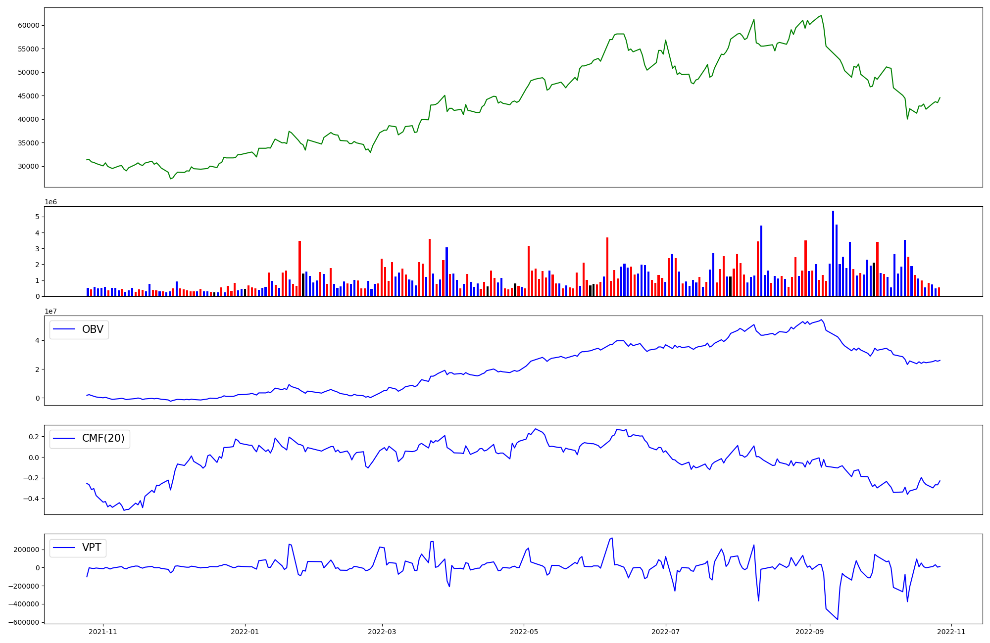 | OBV | CMF | VPT | |