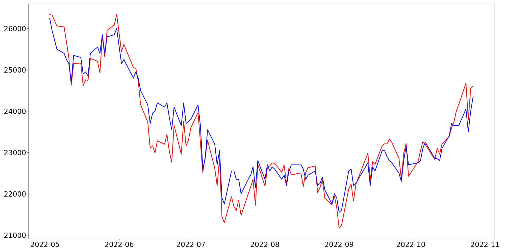 [ - : 실제값(종가) / - : 예측값(종가) ]