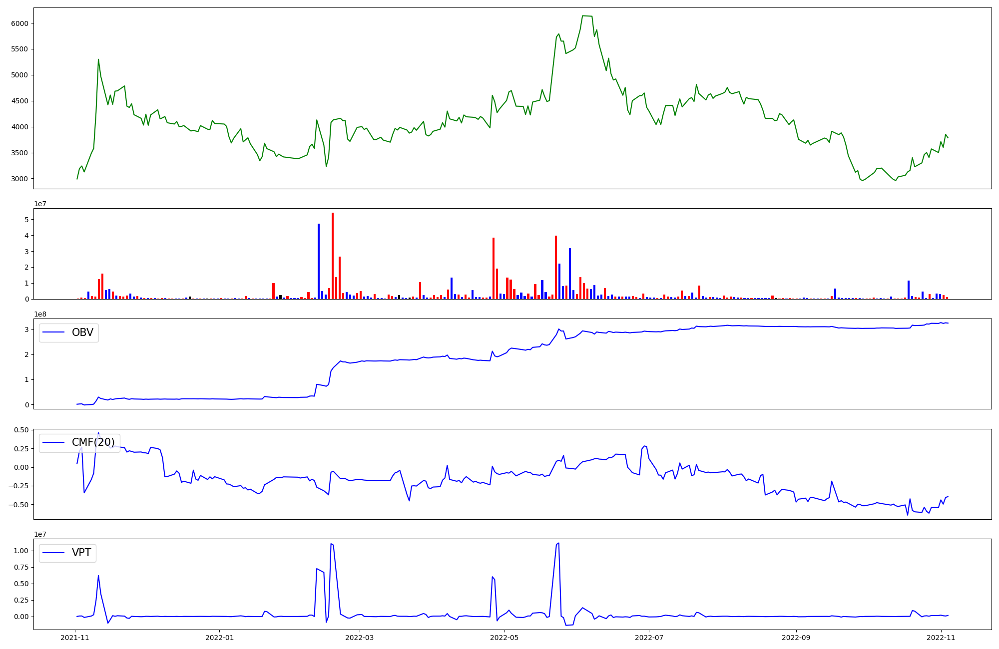 | OBV | CMF | VPT | |