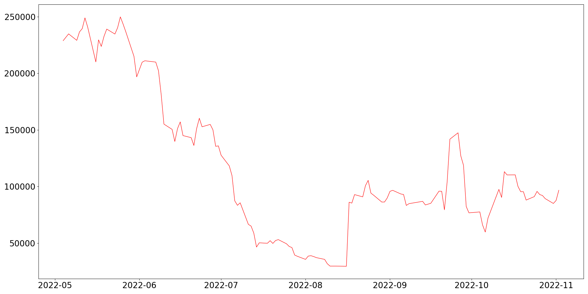 [ - : 실제값(종가) / - : 예측값(종가) ]