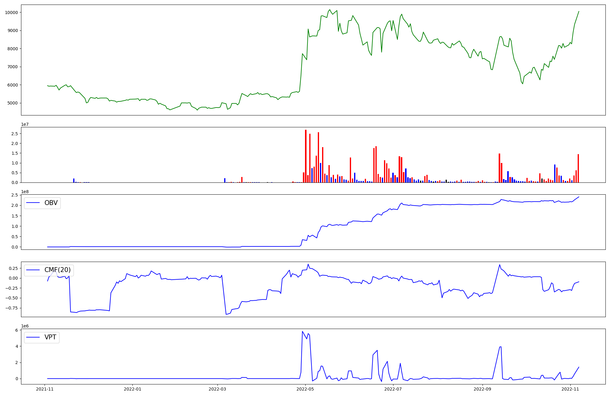 | OBV | CMF | VPT | |