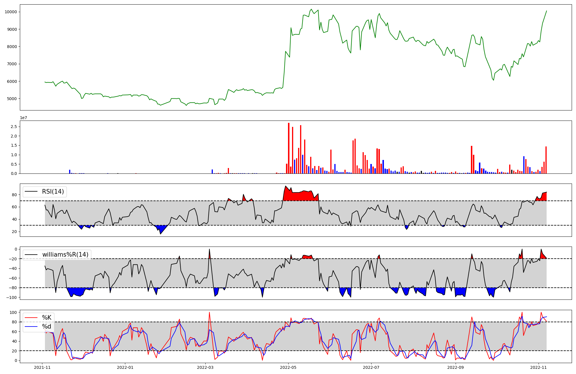| RSI | Williams %R | stochastic(%K) | |