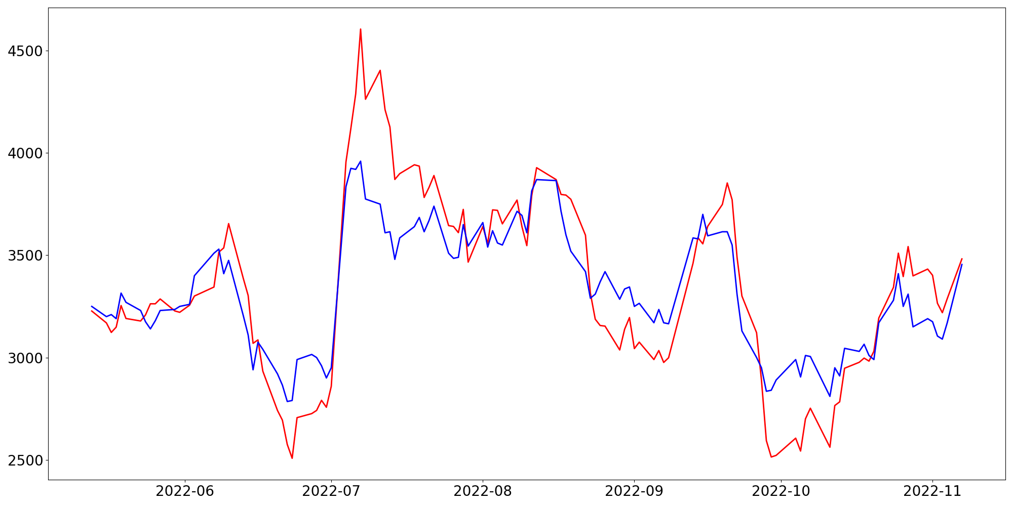 [ - : 실제값(종가) / - : 예측값(종가) ]