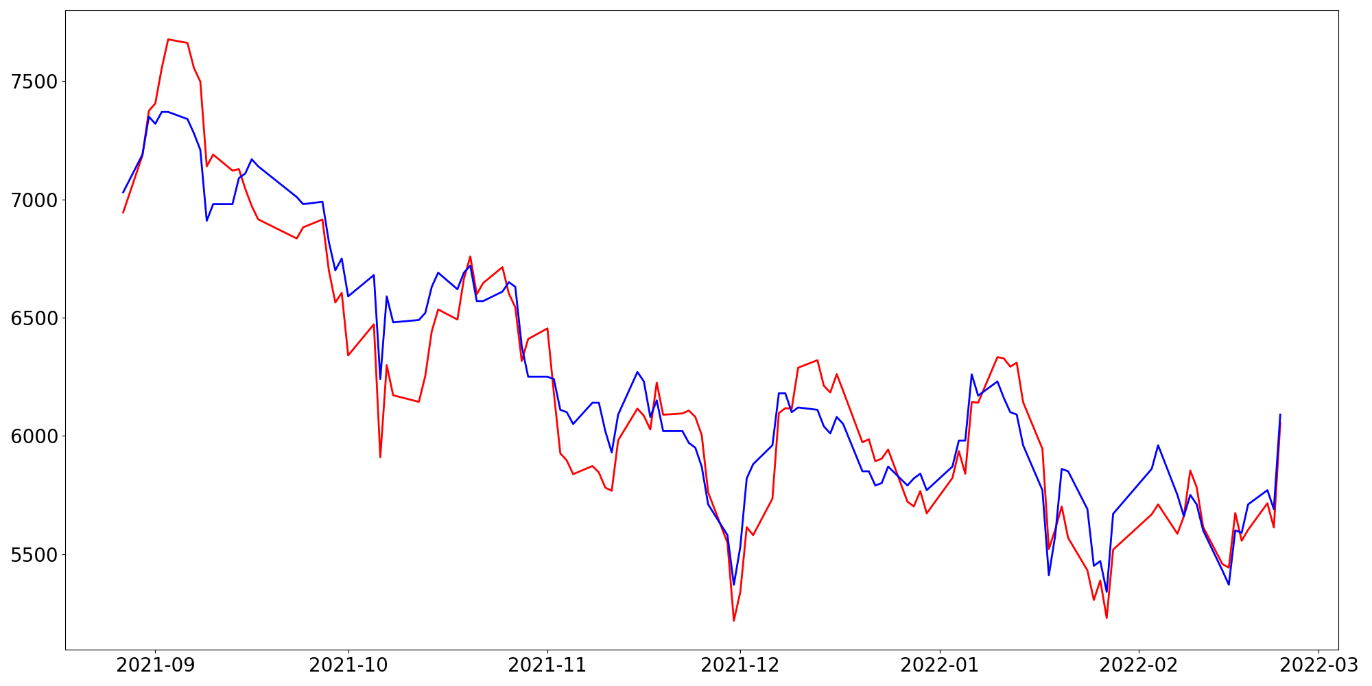 [ - : 실제값(종가) / - : 예측값(종가) ]