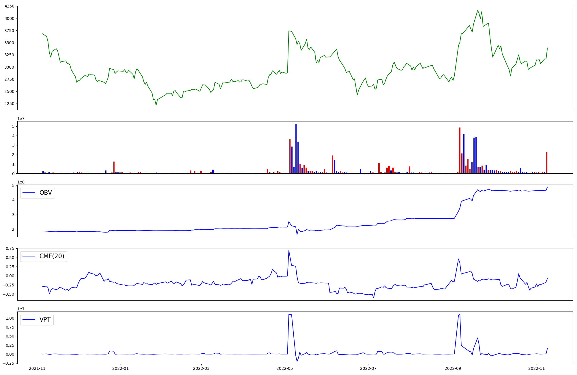 | OBV | CMF | VPT | |