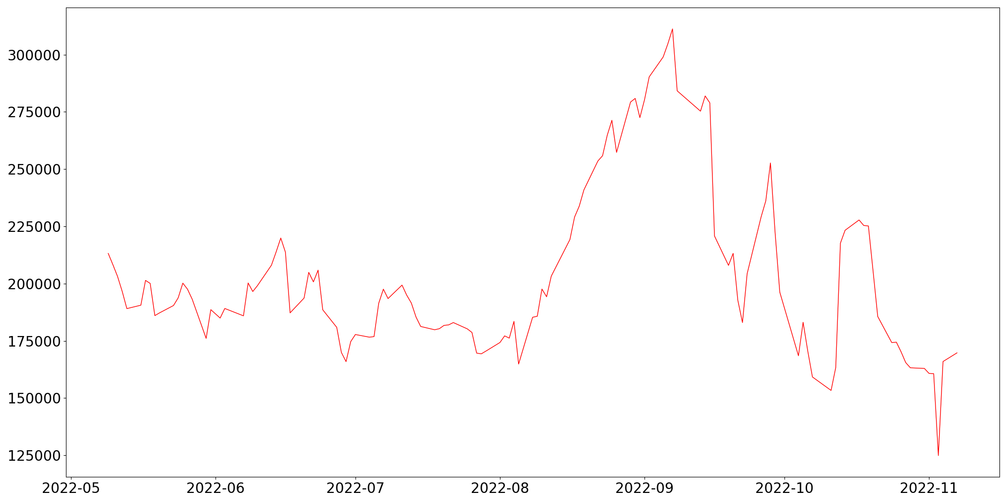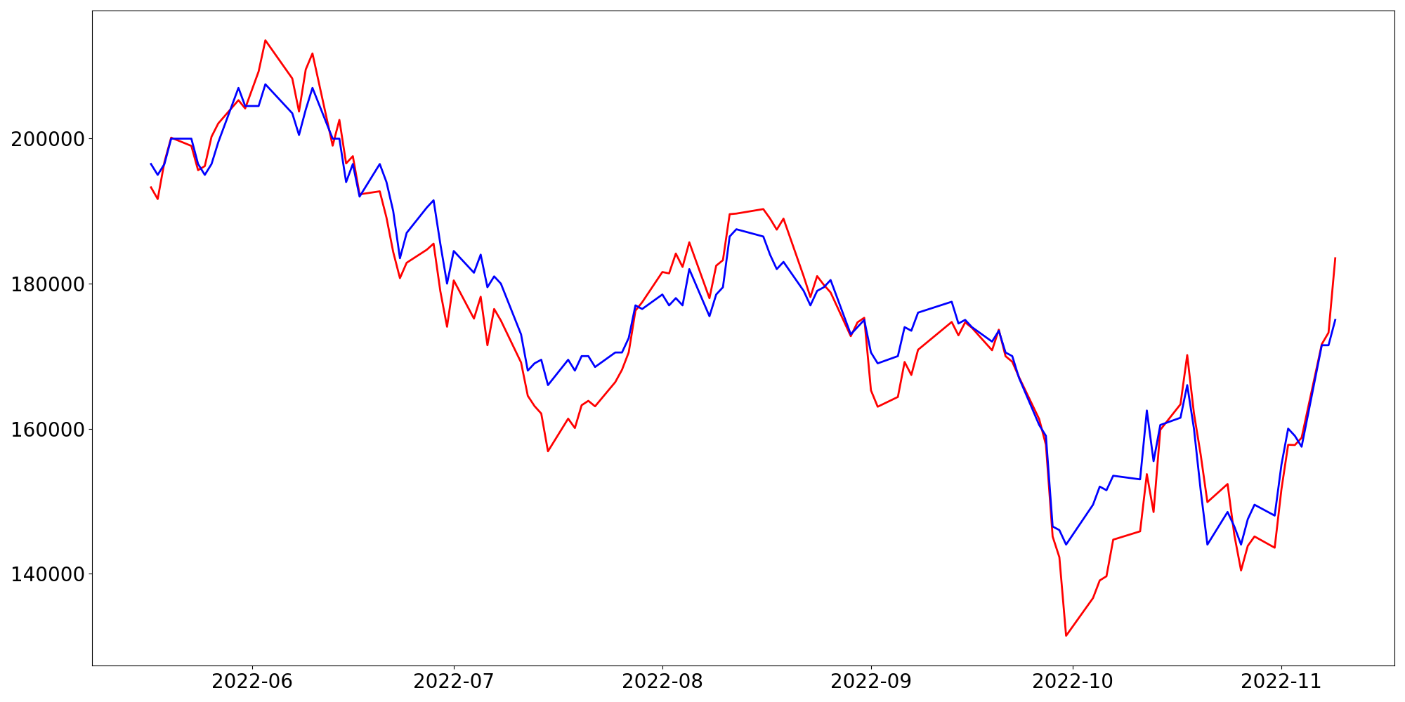 [ - : 실제값(종가) / - : 예측값(종가) ]