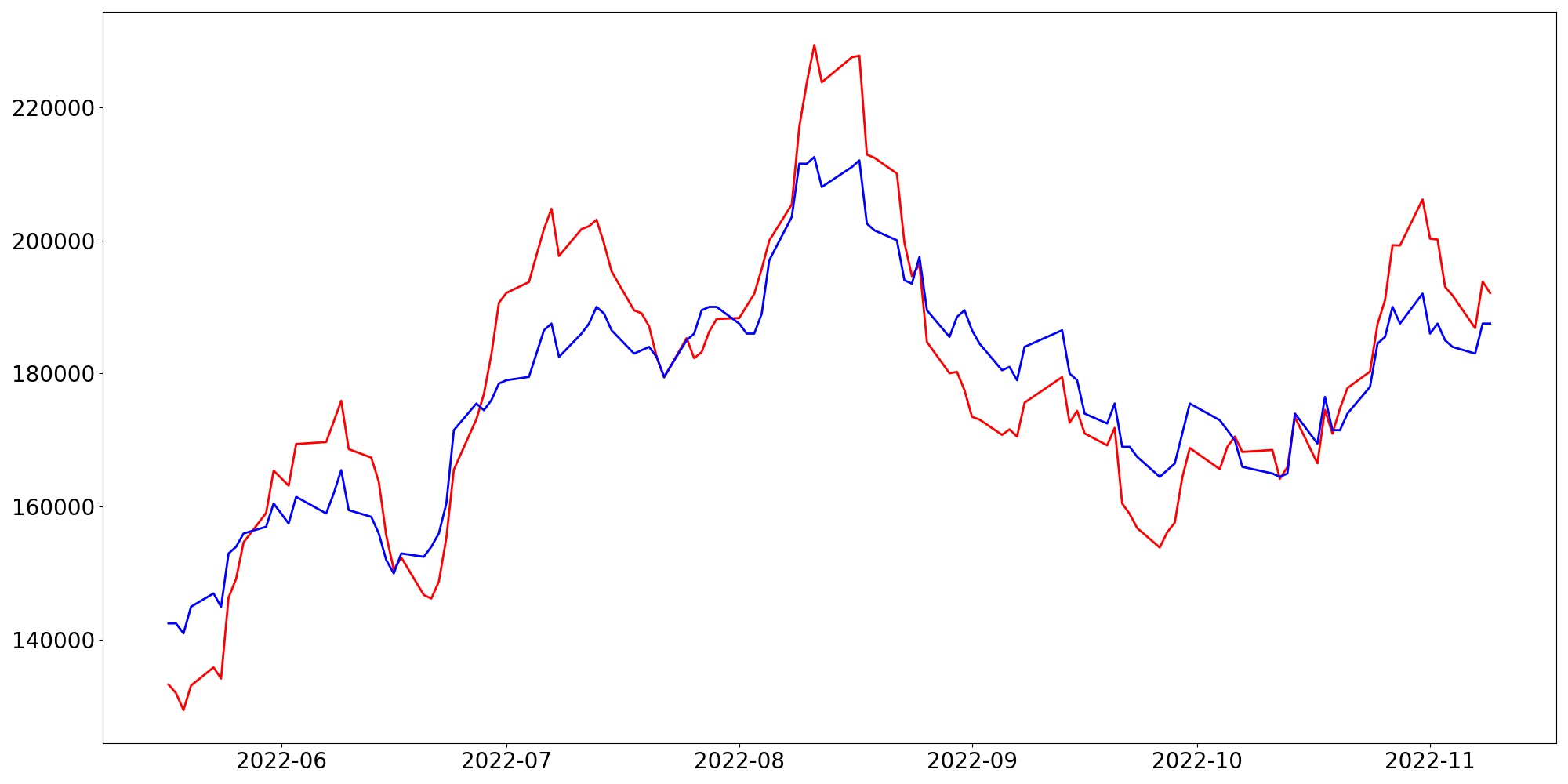 [ - : 실제값(종가) / - : 예측값(종가) ]