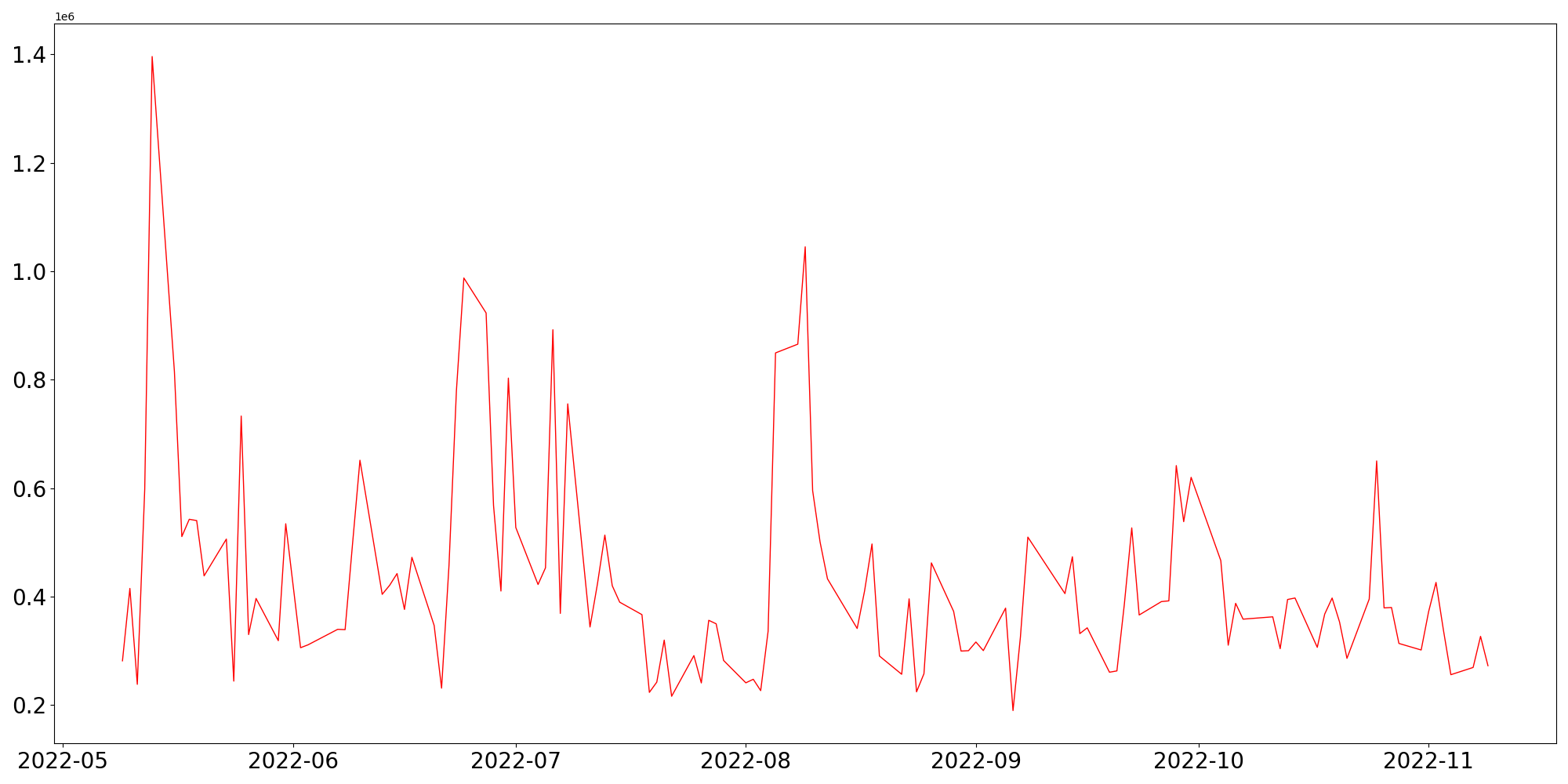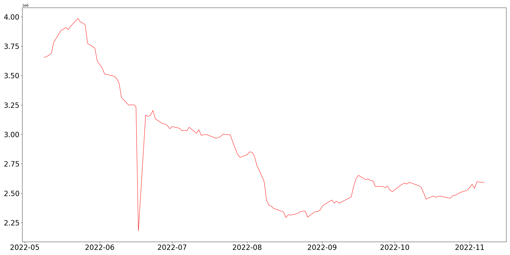 일별 공매도 거래량 추이를 그래프로 나타낸 것으로 공매도 거래량이 증가할 수록 단기적으로 가격 하락을 예측하는 시장참가자가 증거하는 것으로 판단해 볼 수 있습니다.