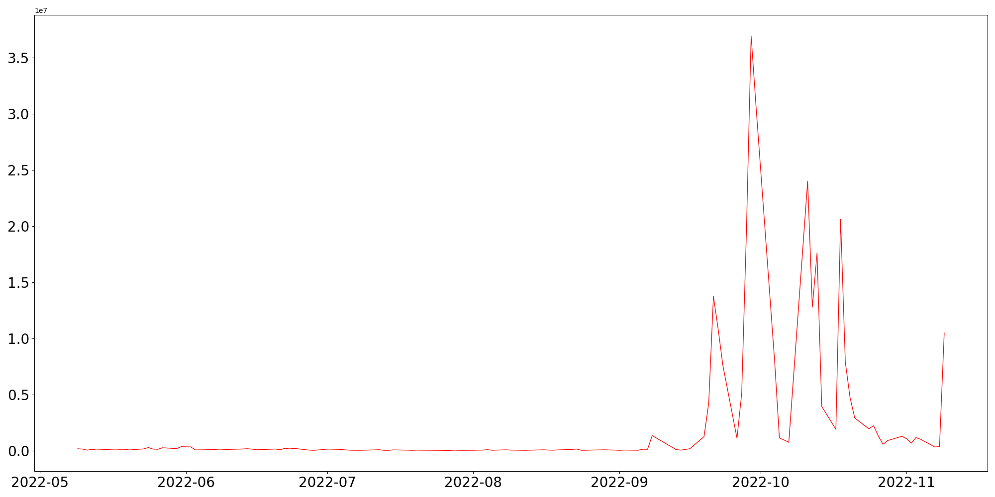 일별 공매도 거래량 추이를 그래프로 나타낸 것으로 공매도 거래량이 증가할 수록 단기적으로 가격 하락을 예측하는 시장참가자가 증거하는 것으로 판단해 볼 수 있습니다.
