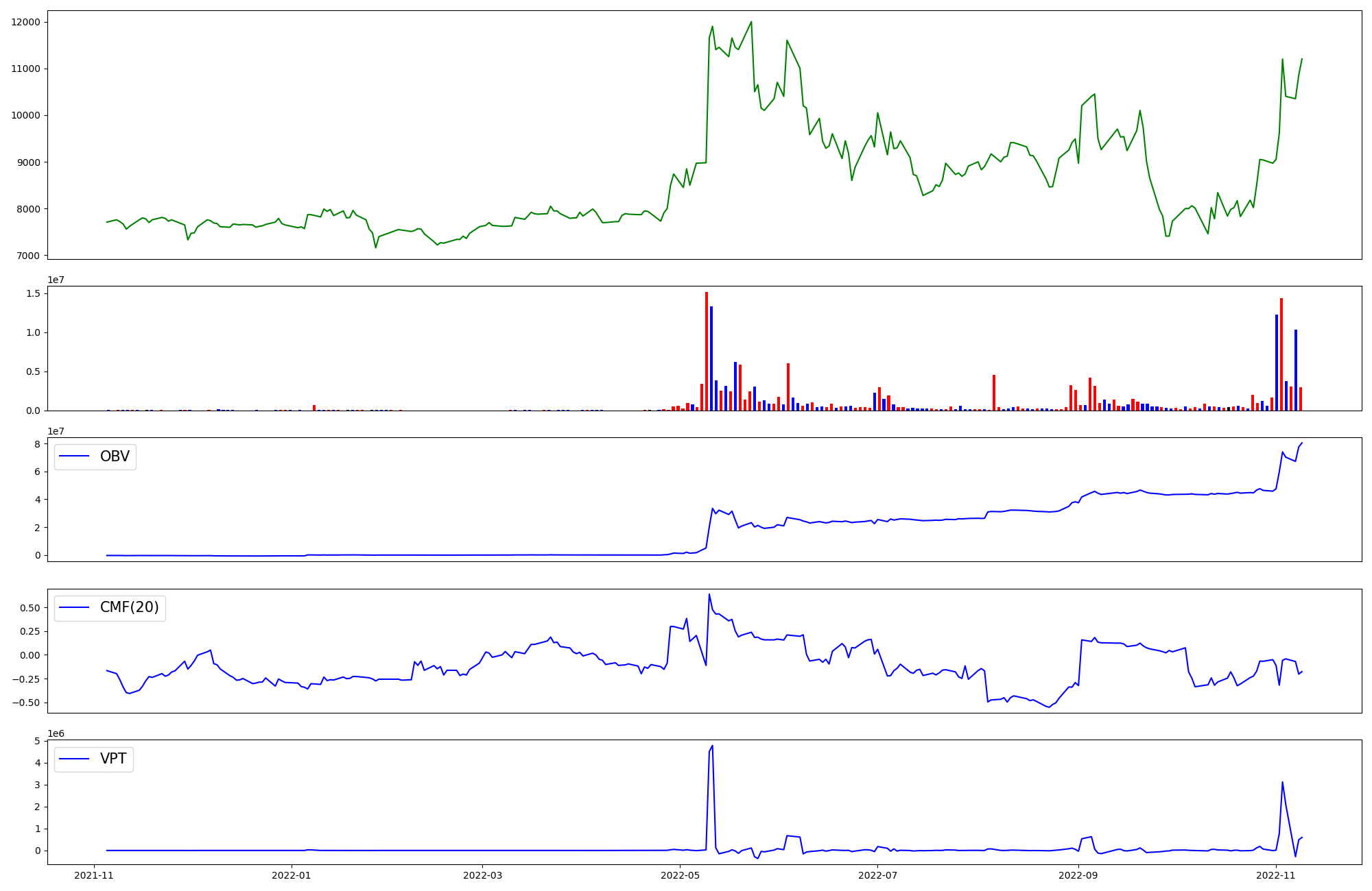 | OBV | CMF | VPT | |