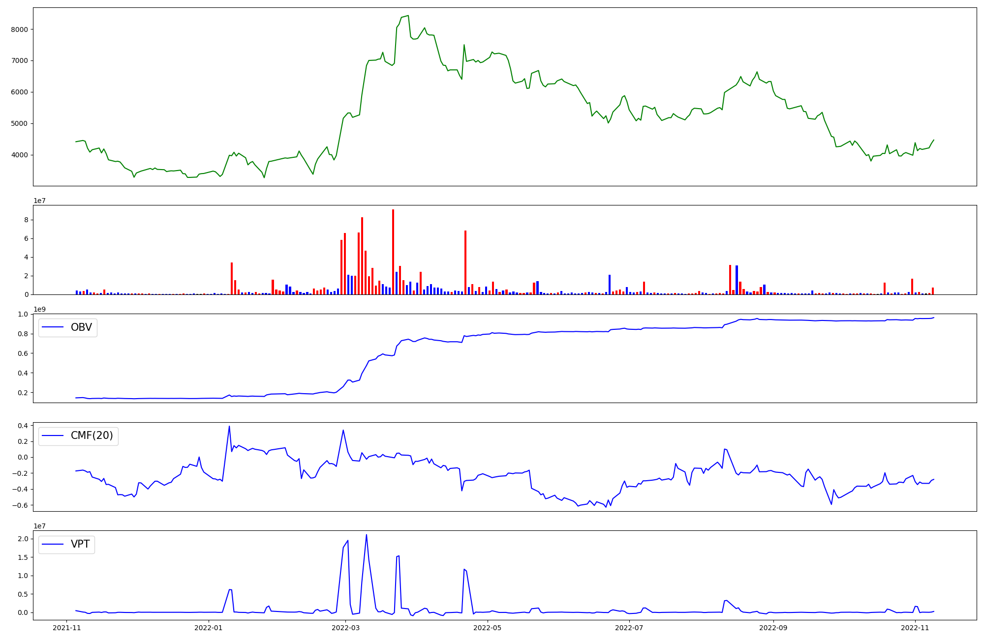 | OBV | CMF | VPT | |