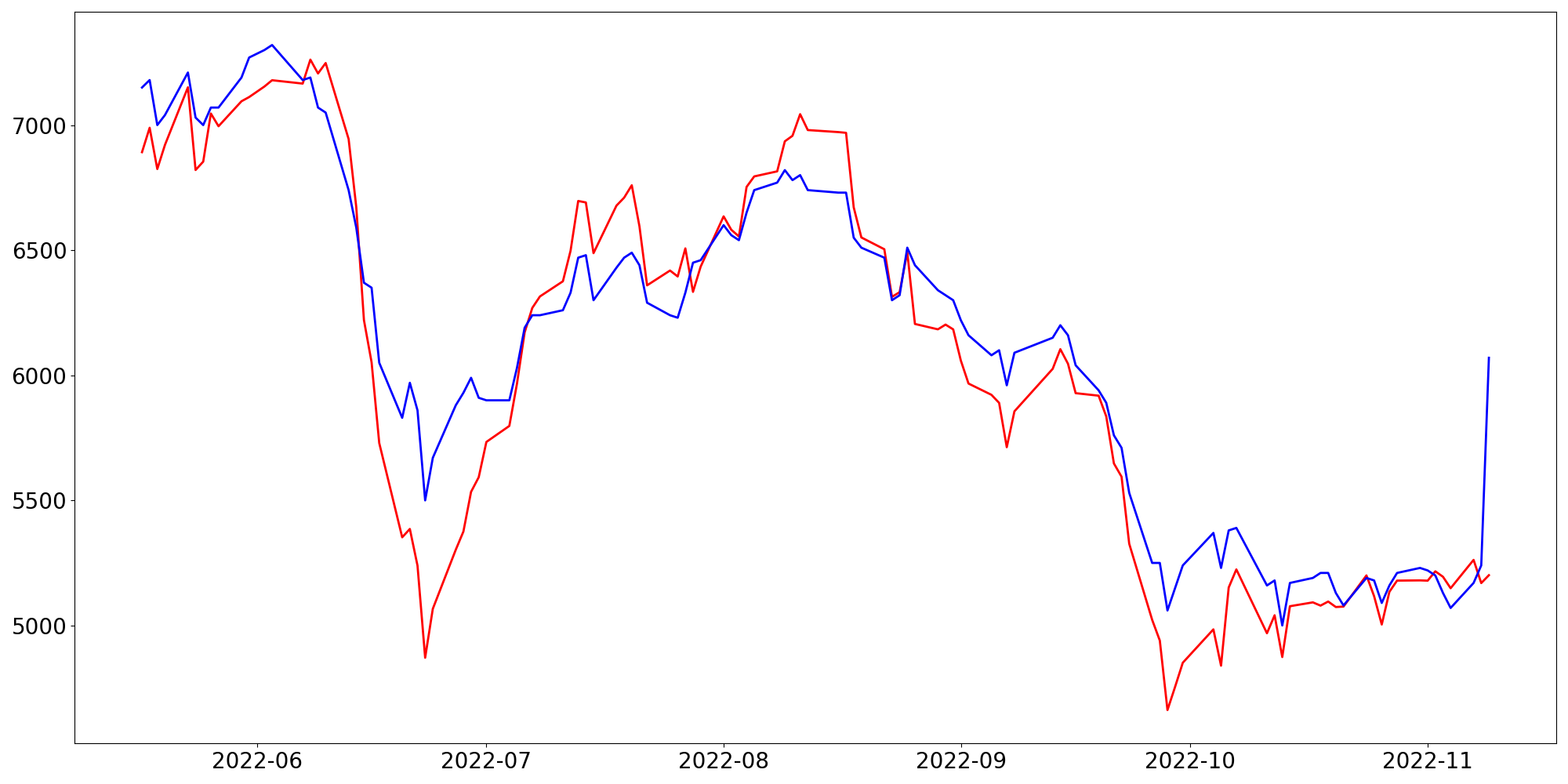 [ - : 실제값(종가) / - : 예측값(종가) ]