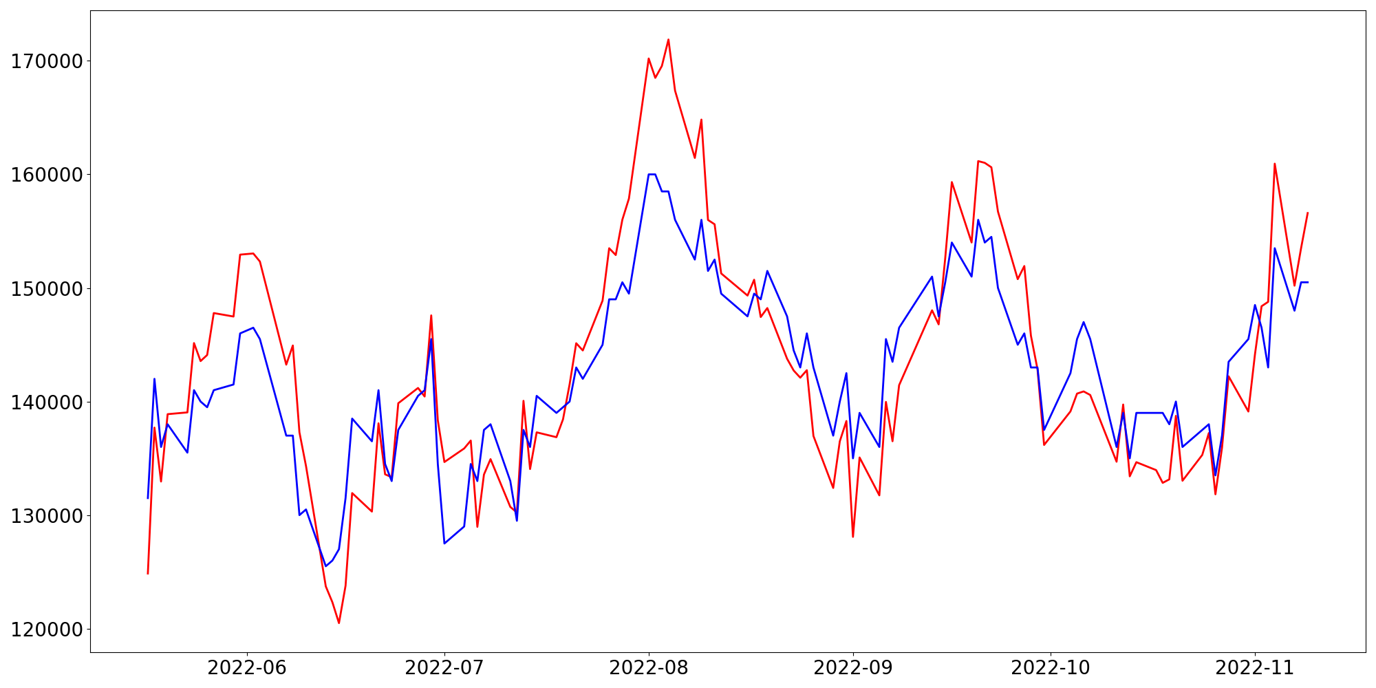 [ - : 실제값(종가) / - : 예측값(종가) ]
