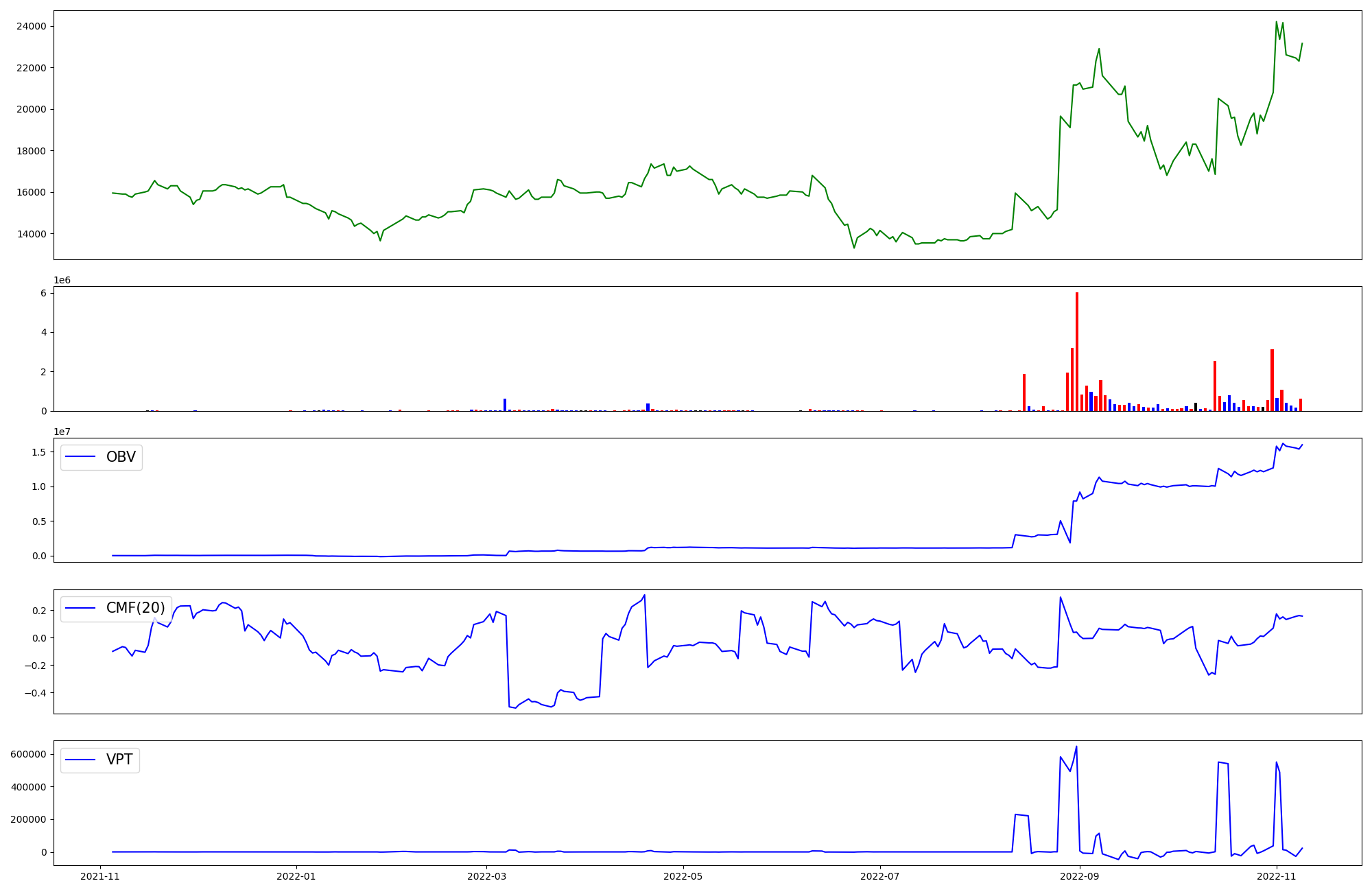| OBV | CMF | VPT | |