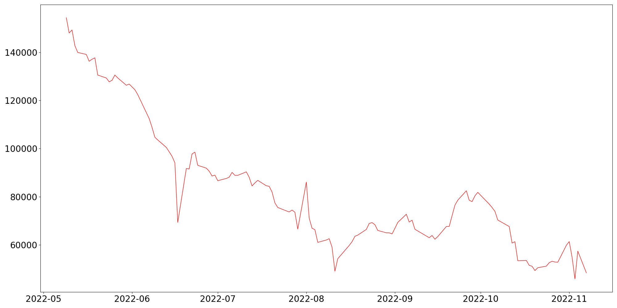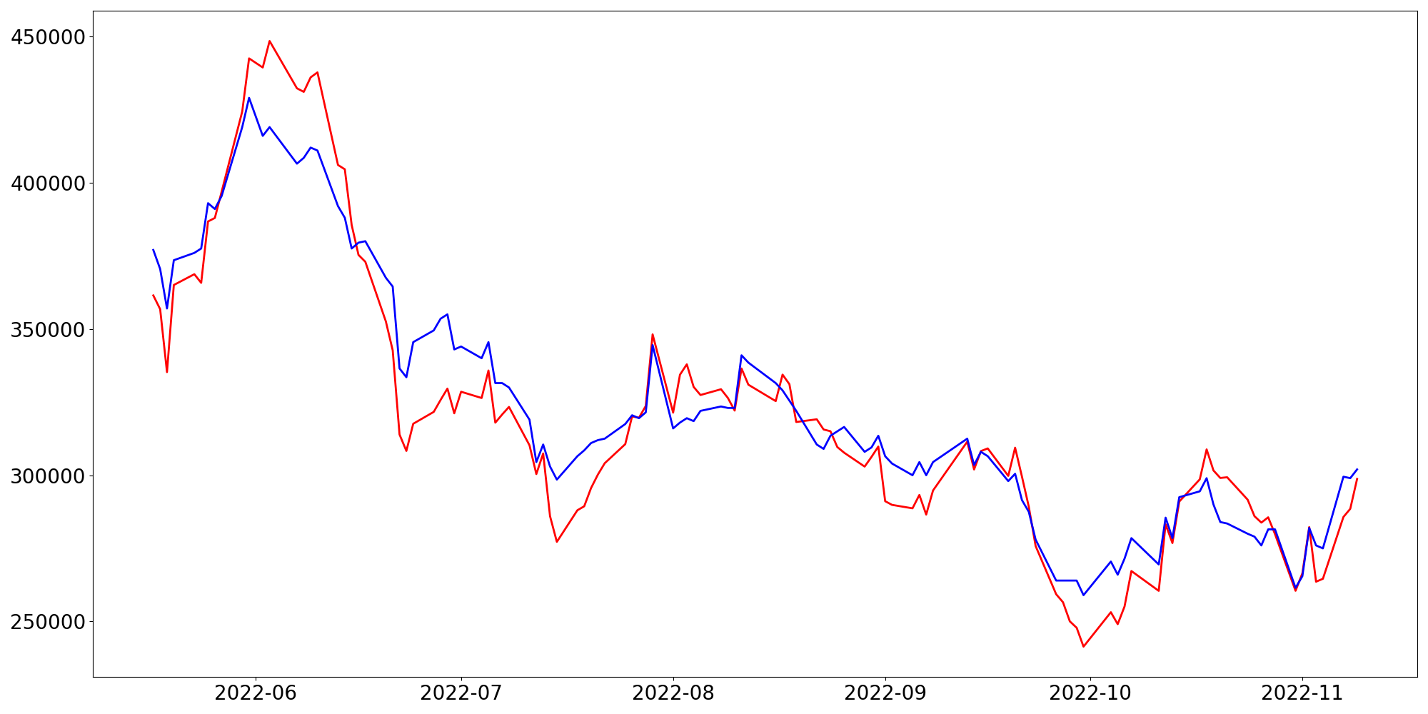 [ - : 실제값(종가) / - : 예측값(종가) ]