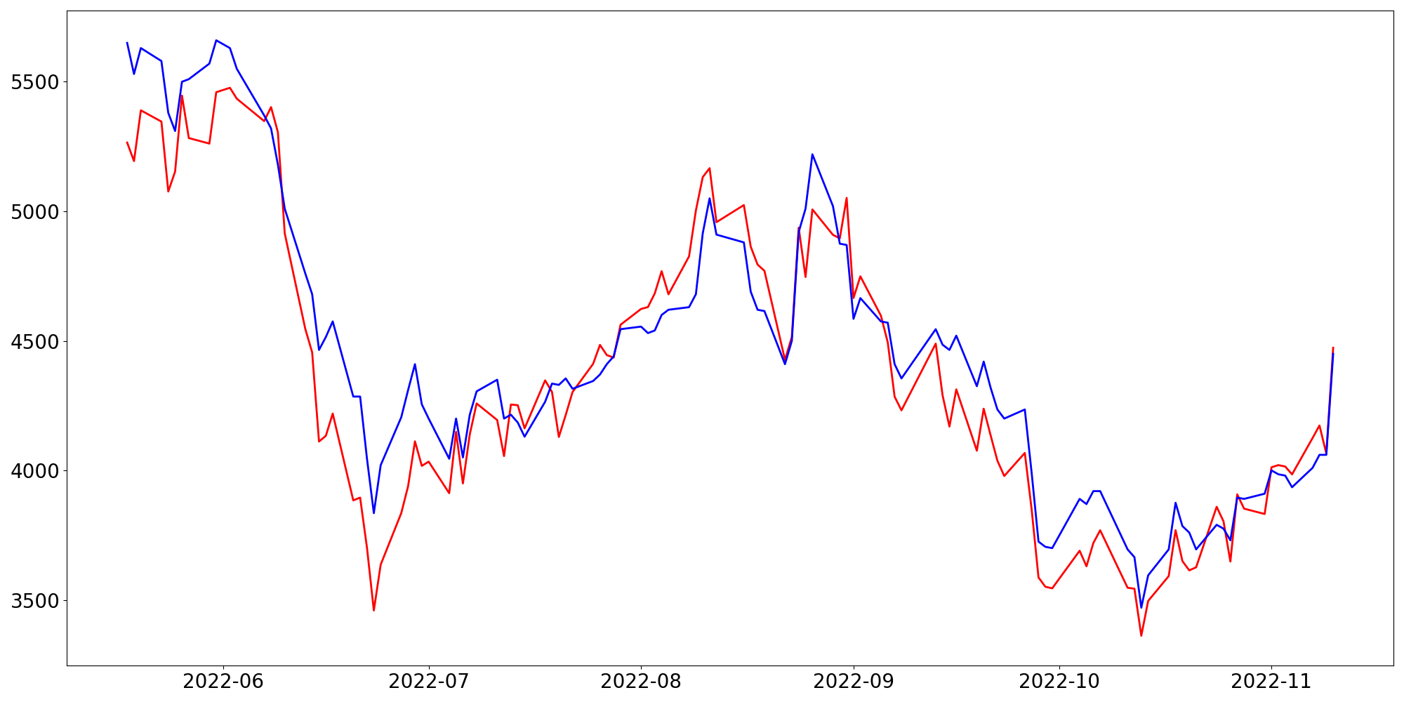 [ - : 실제값(종가) / - : 예측값(종가) ]