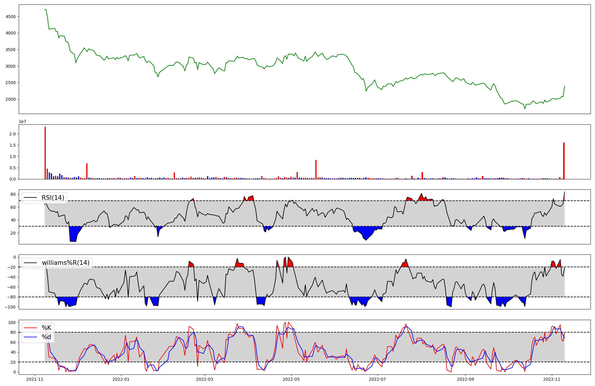 | RSI | Williams %R | stochastic(%K) | |