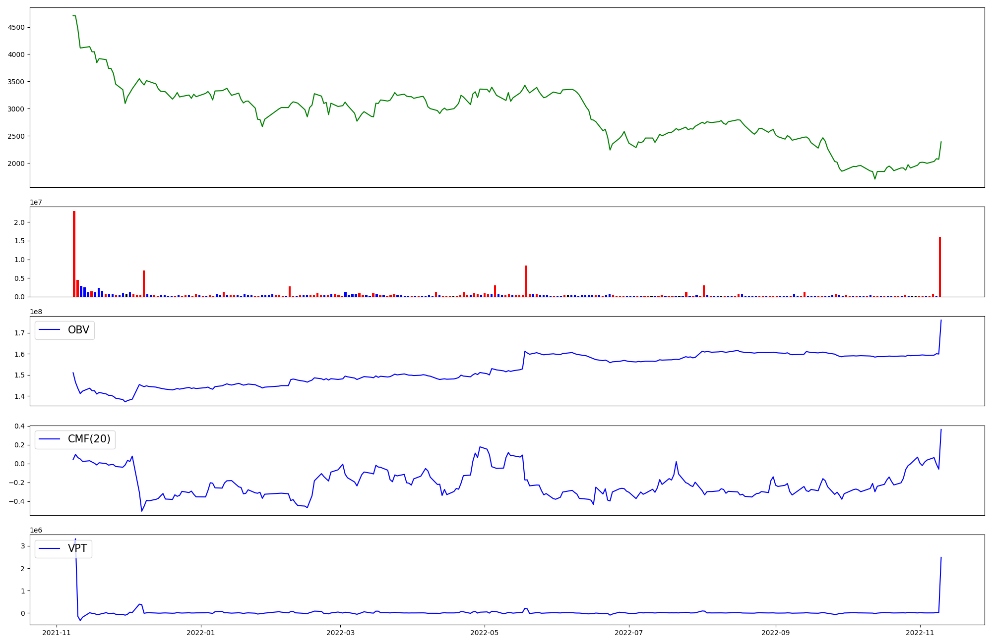 | OBV | CMF | VPT | |