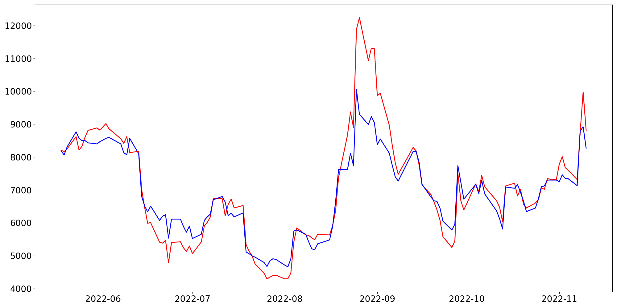 [ - : 실제값(종가) / - : 예측값(종가) ]