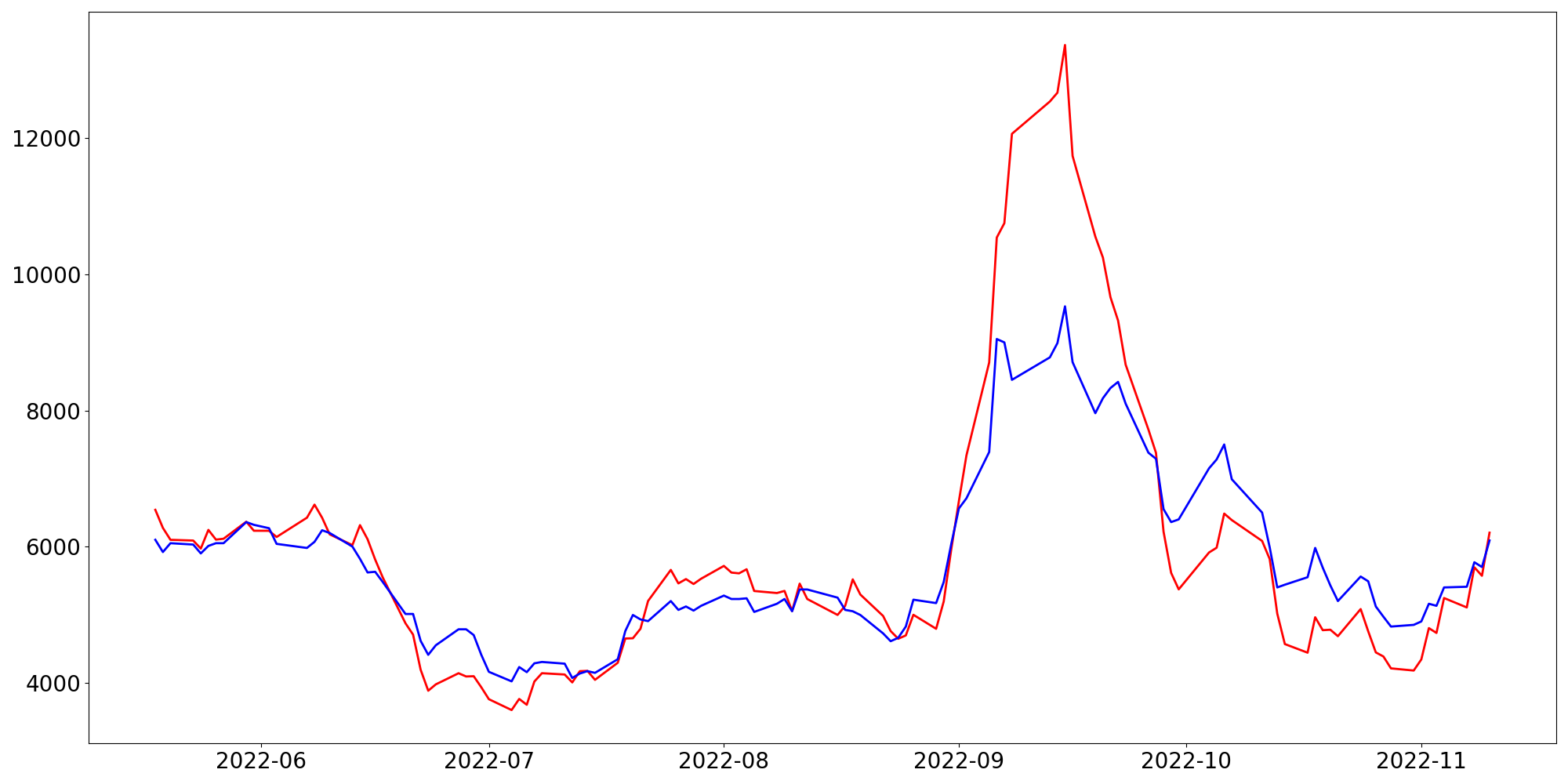 [ - : 실제값(종가) / - : 예측값(종가) ]