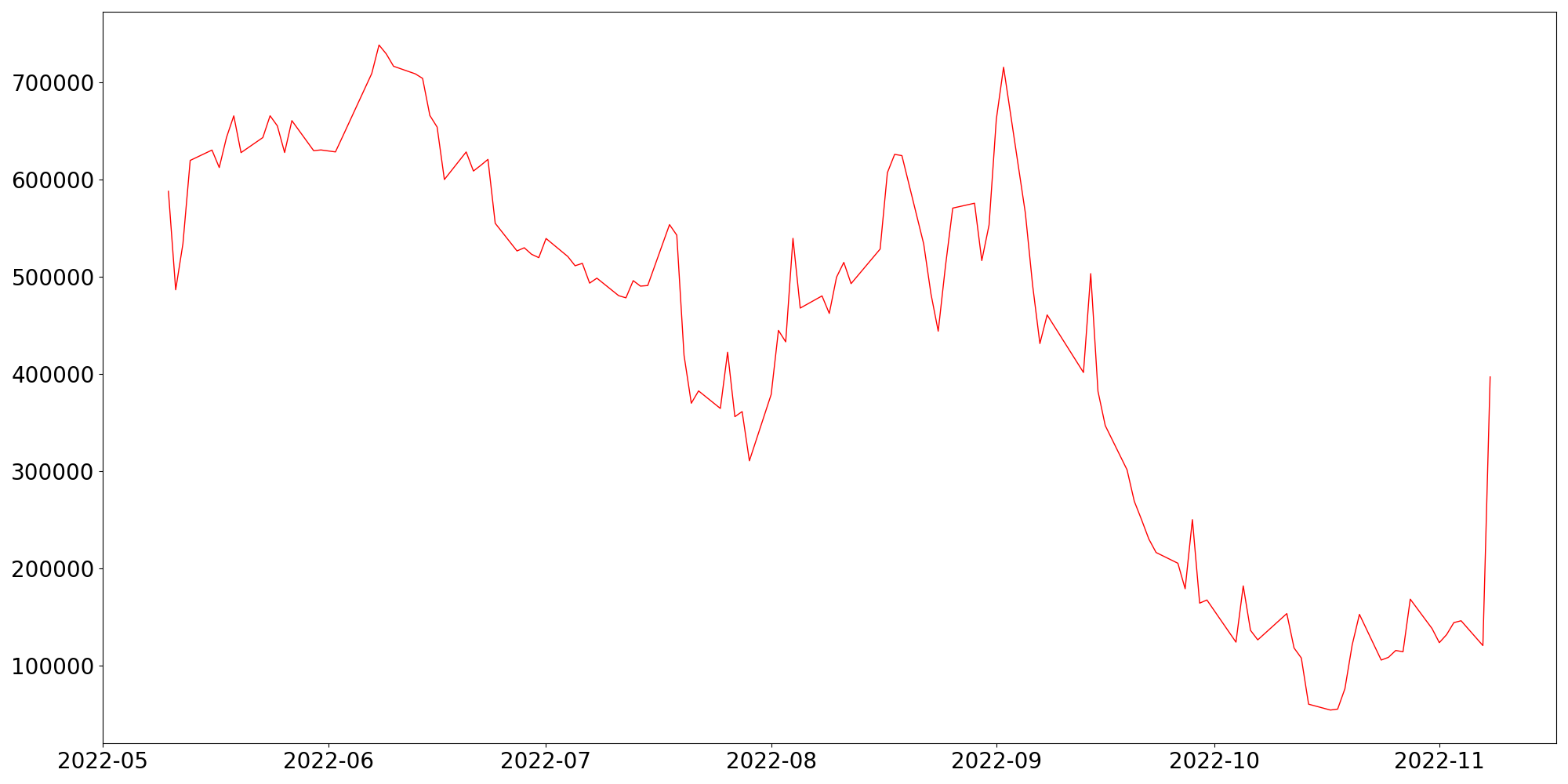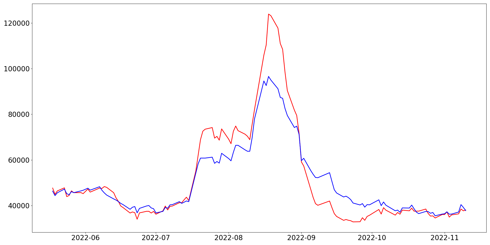 [ - : 실제값(종가) / - : 예측값(종가) ]