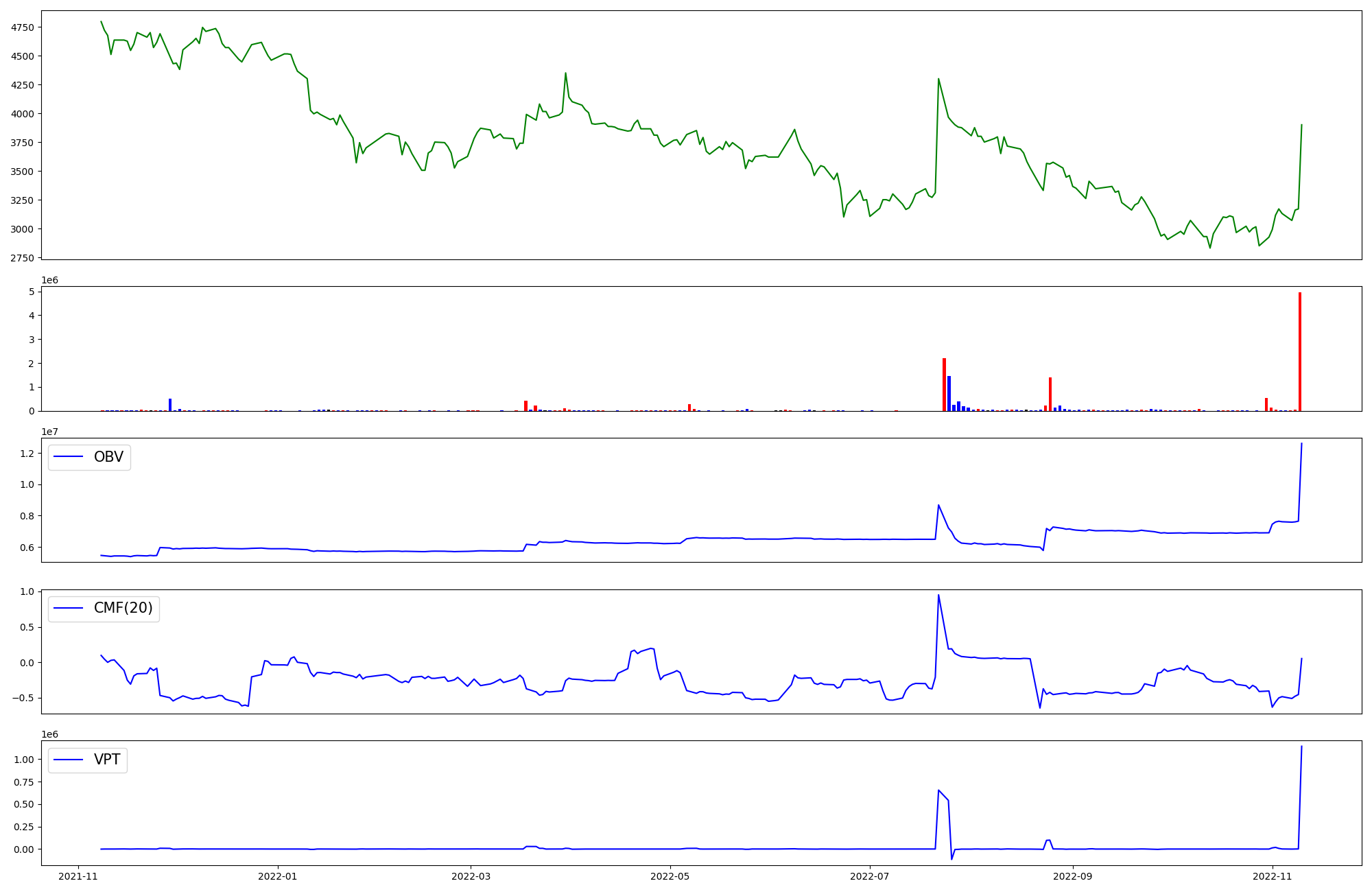 | OBV | CMF | VPT | |