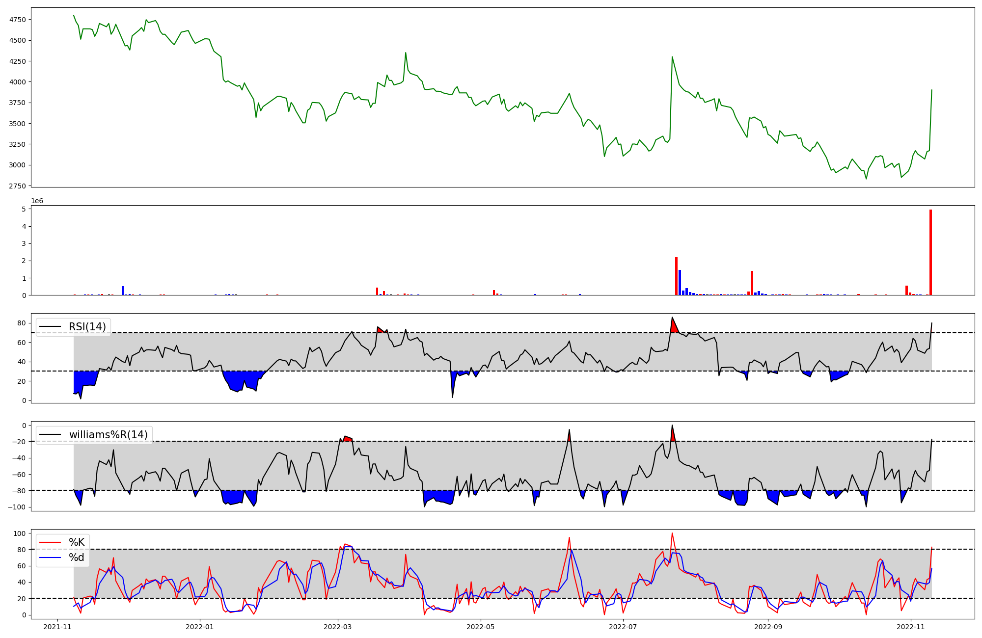 | RSI | Williams %R | stochastic(%K) | |