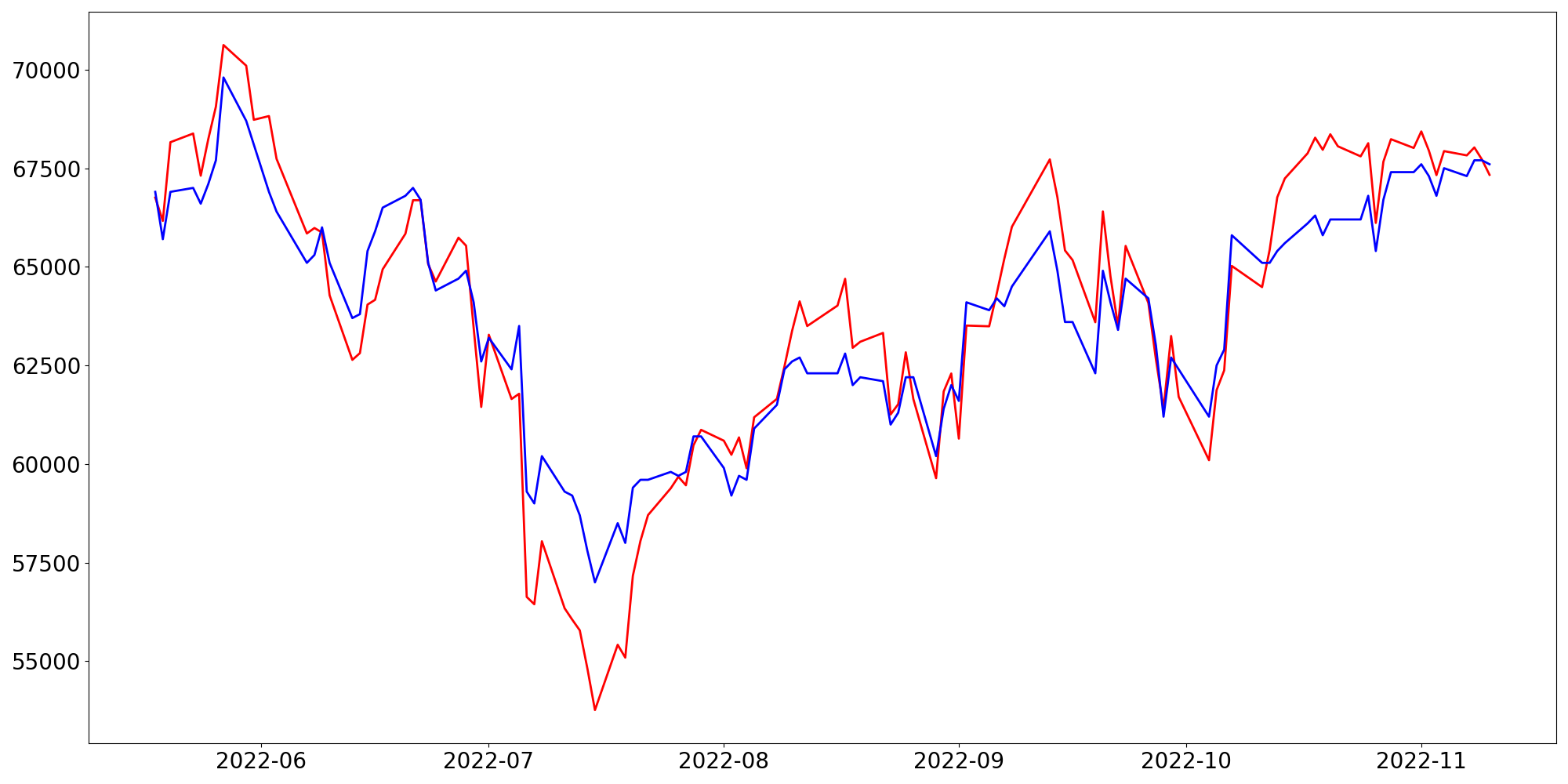 [ - : 실제값(종가) / - : 예측값(종가) ]