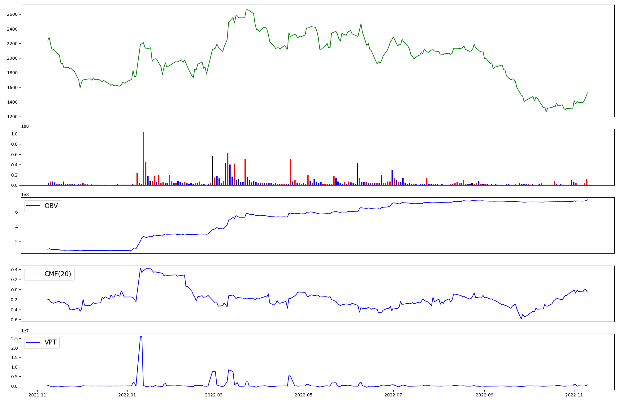 | OBV | CMF | VPT | |