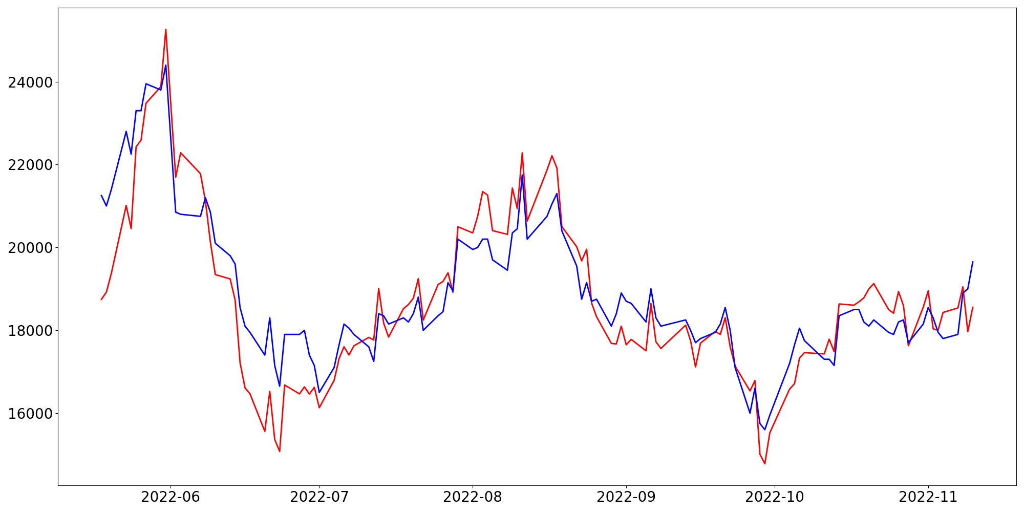 [ - : 실제값(종가) / - : 예측값(종가) ]