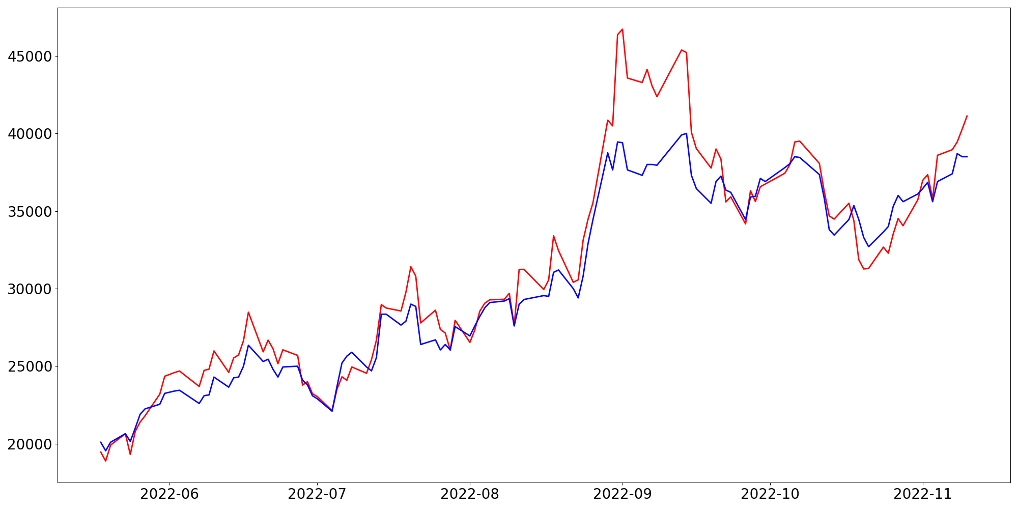 [ - : 실제값(종가) / - : 예측값(종가) ]