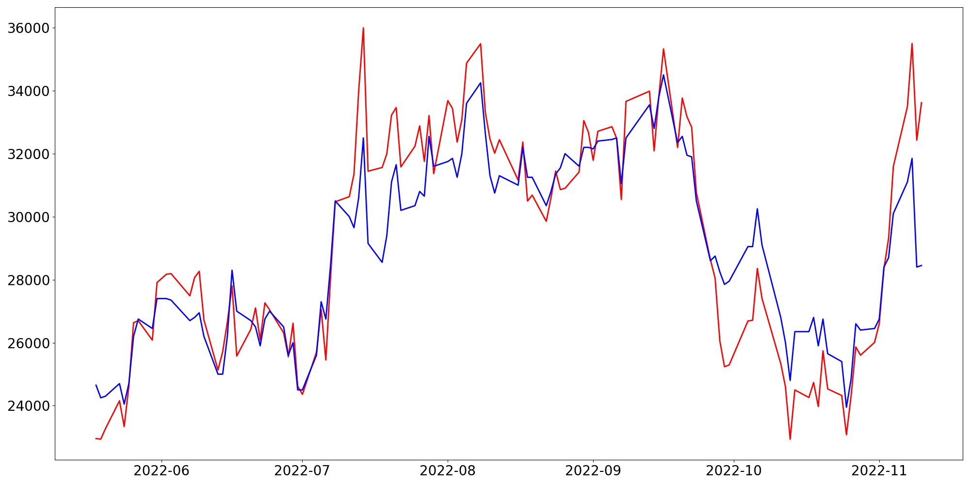 [ - : 실제값(종가) / - : 예측값(종가) ]