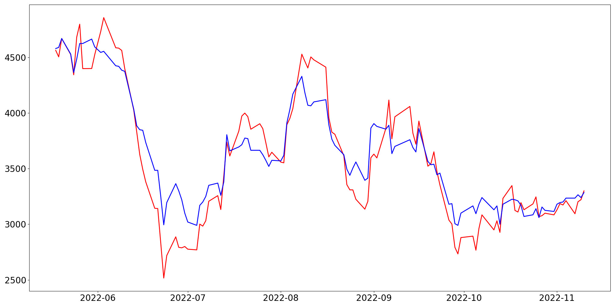 [ - : 실제값(종가) / - : 예측값(종가) ]