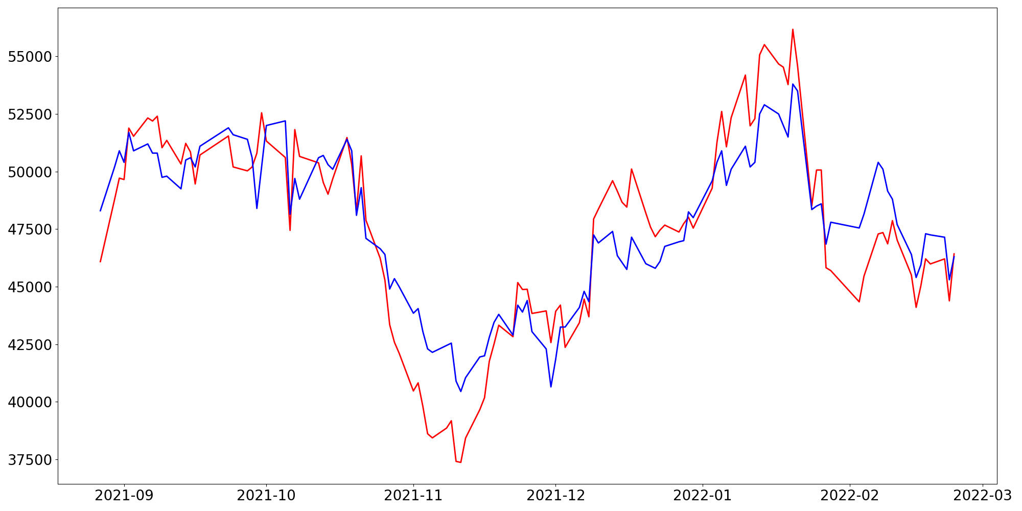 [ - : 실제값(종가) / - : 예측값(종가) ]