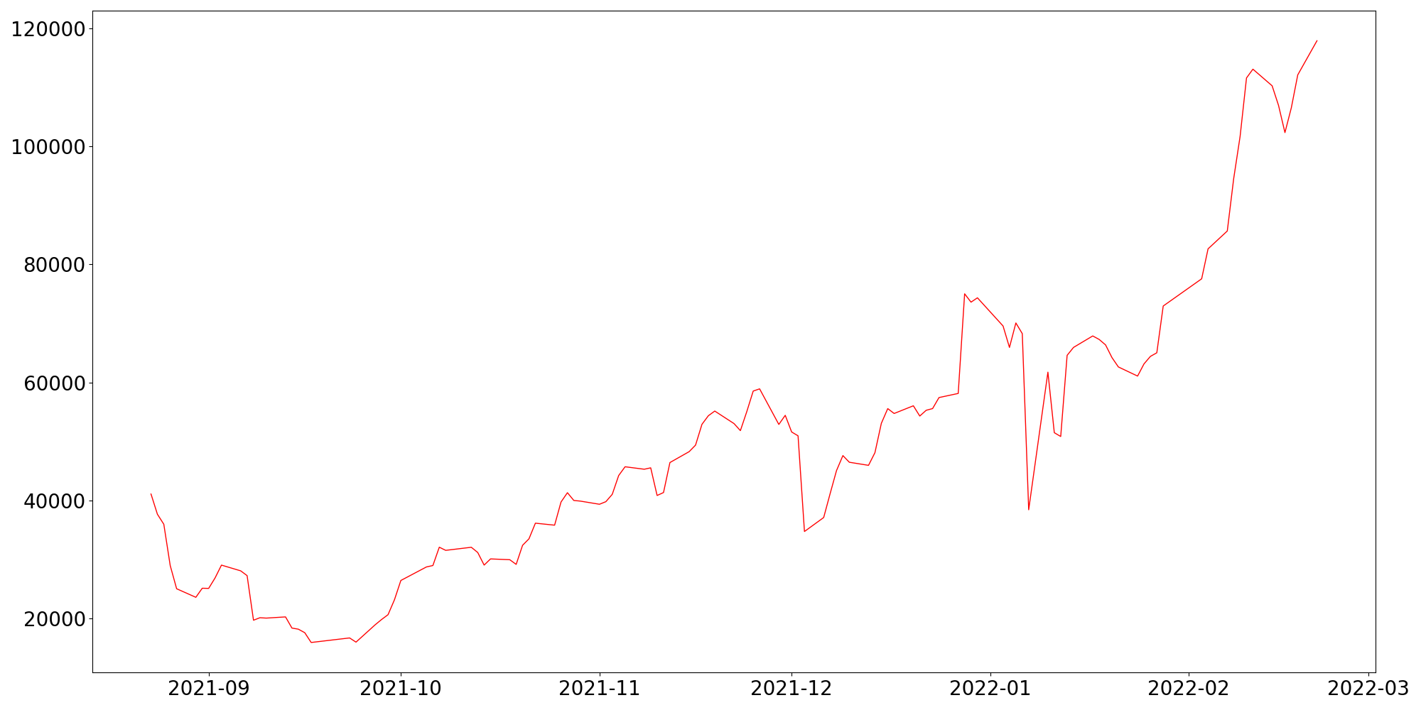 [ - : 실제값(종가) / - : 예측값(종가) ]