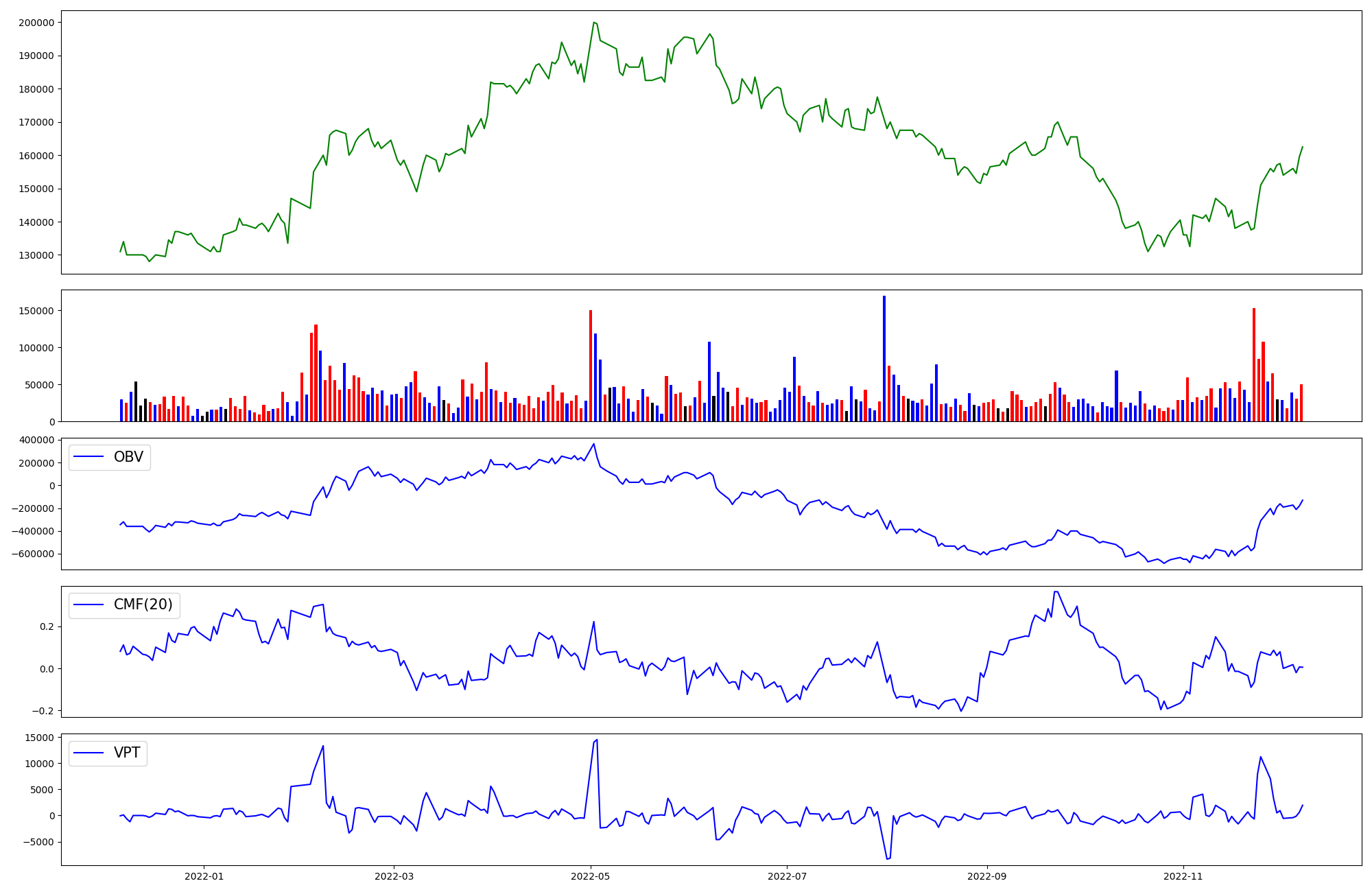| OBV | CMF | VPT | |