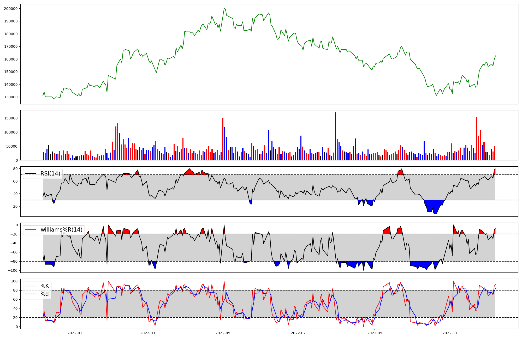 | RSI | Williams %R | stochastic(%K) | |