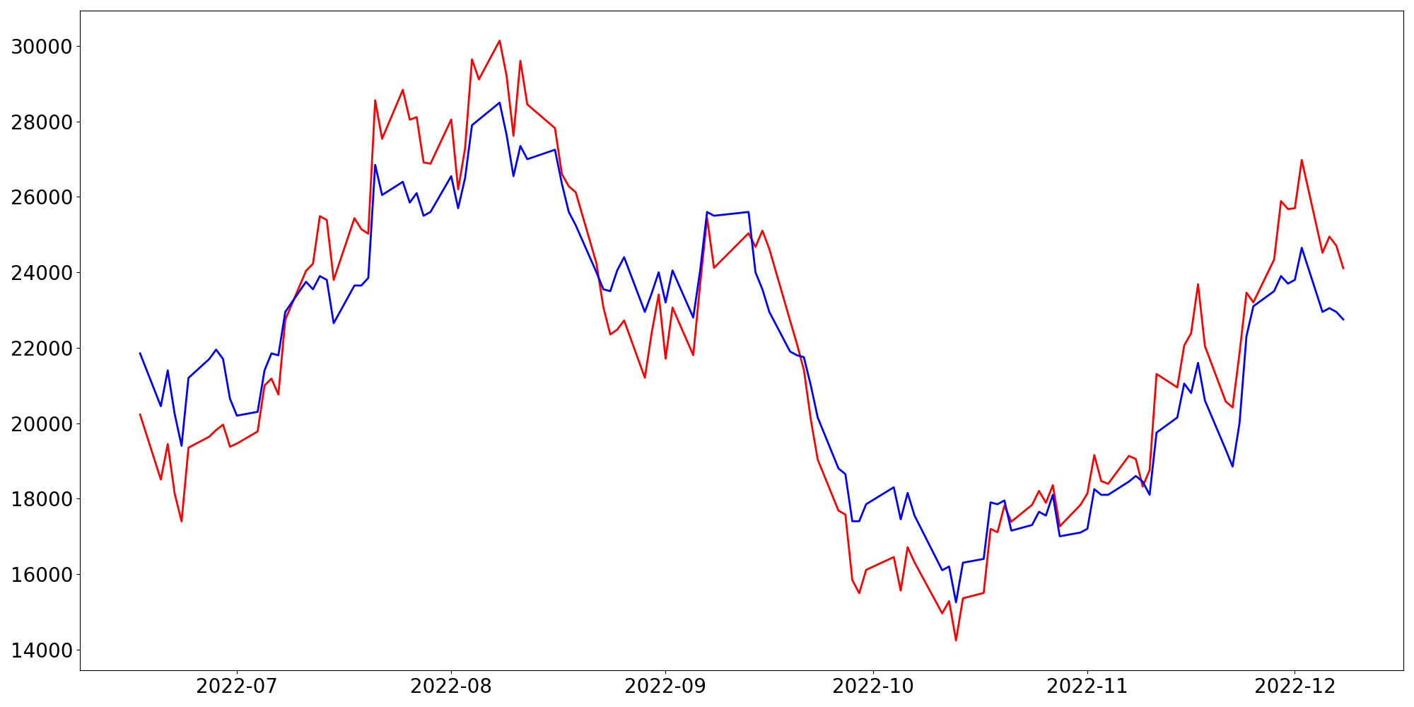 [ - : 실제값(종가) / - : 예측값(종가) ]