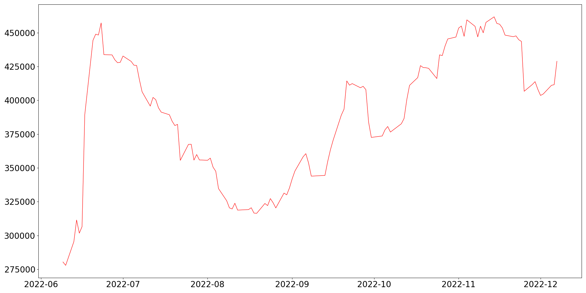 [ - : 실제값(종가) / - : 예측값(종가) ]