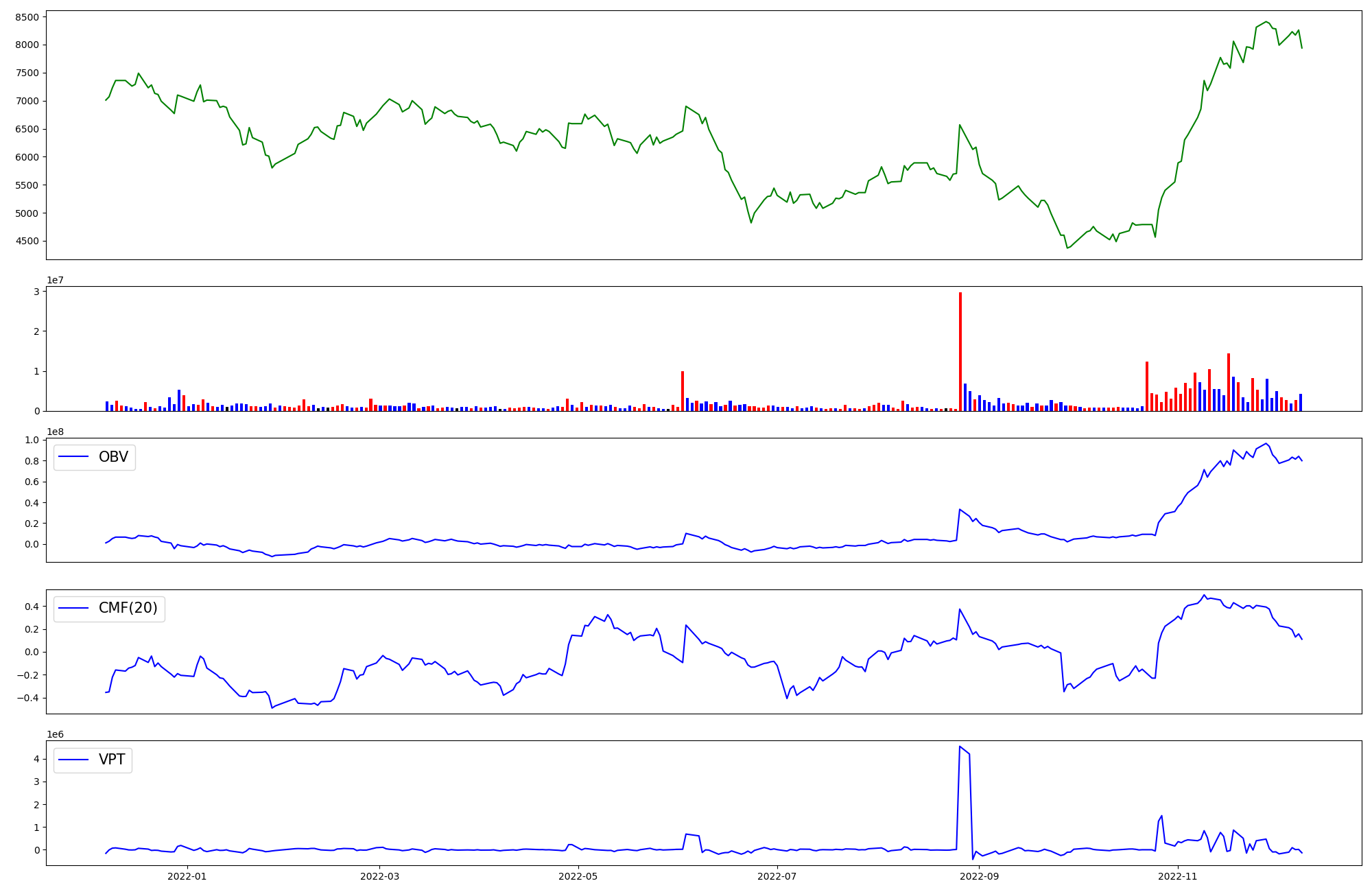 | OBV | CMF | VPT | |