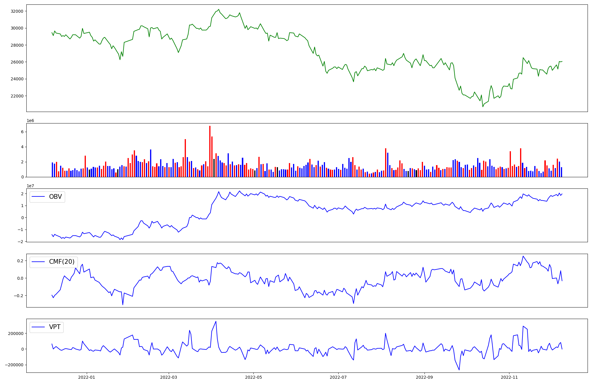 | OBV | CMF | VPT | |