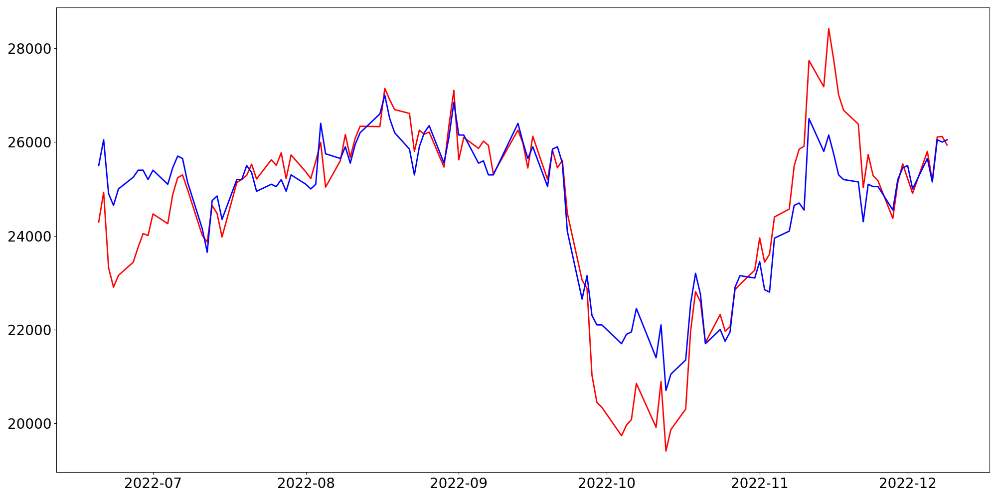 [ - : 실제값(종가) / - : 예측값(종가) ]