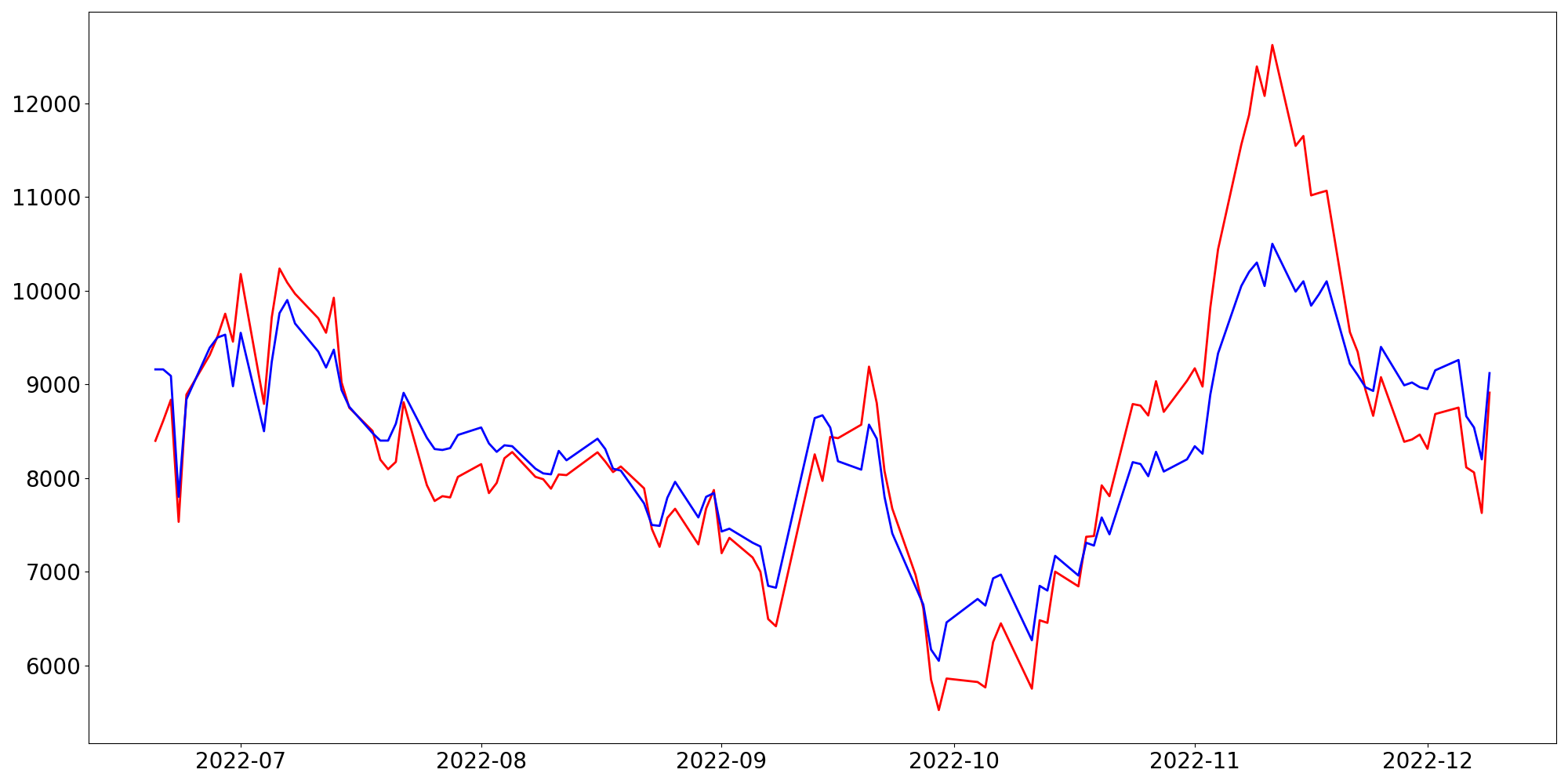 [ - : 실제값(종가) / - : 예측값(종가) ]