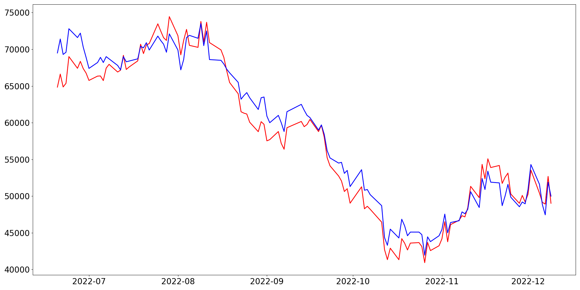 [ - : 실제값(종가) / - : 예측값(종가) ]