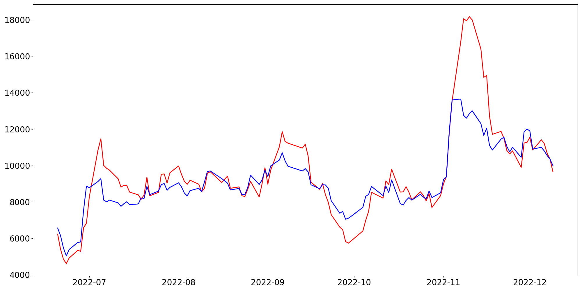 [ - : 실제값(종가) / - : 예측값(종가) ]