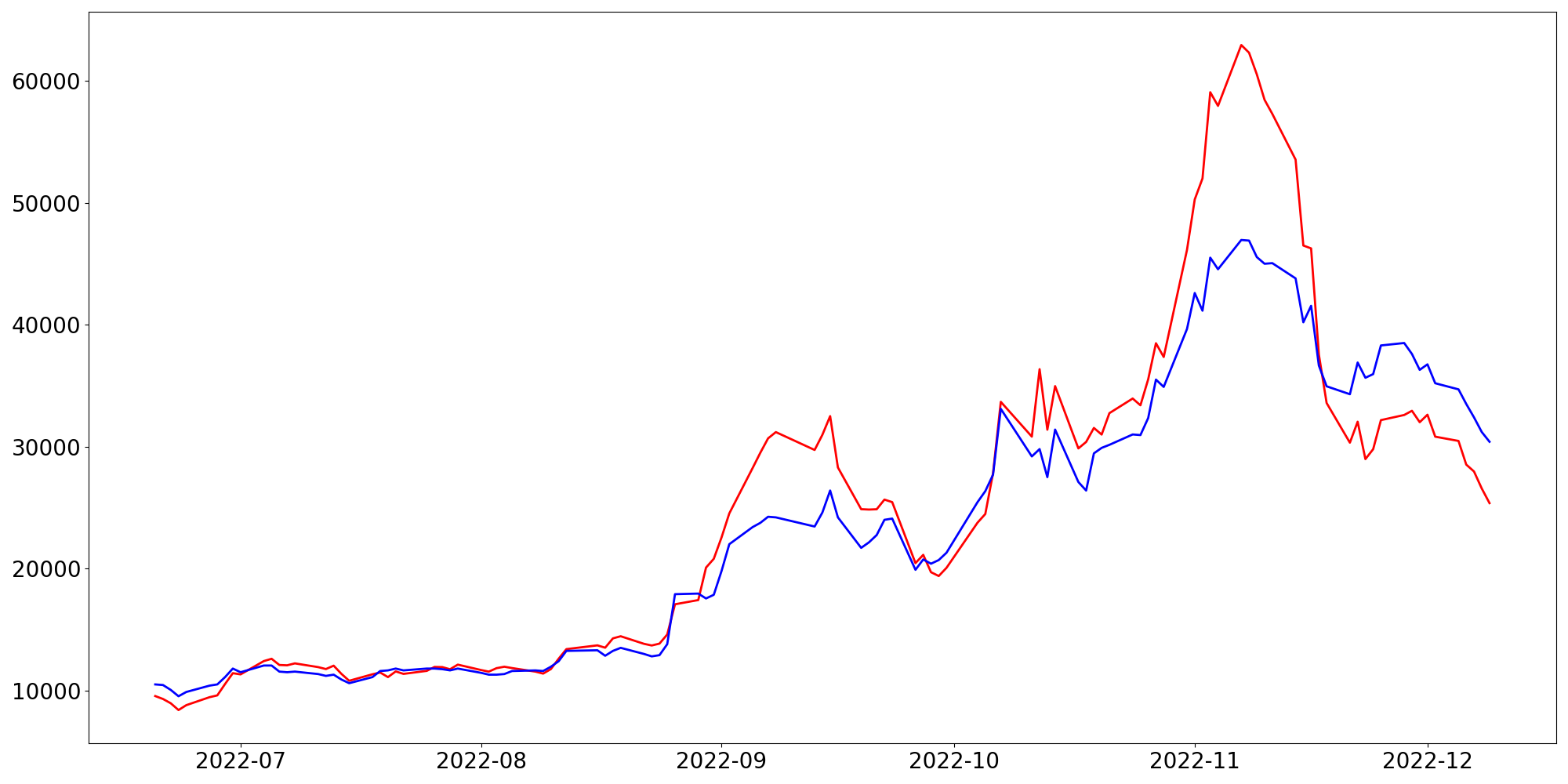 [ - : 실제값(종가) / - : 예측값(종가) ]