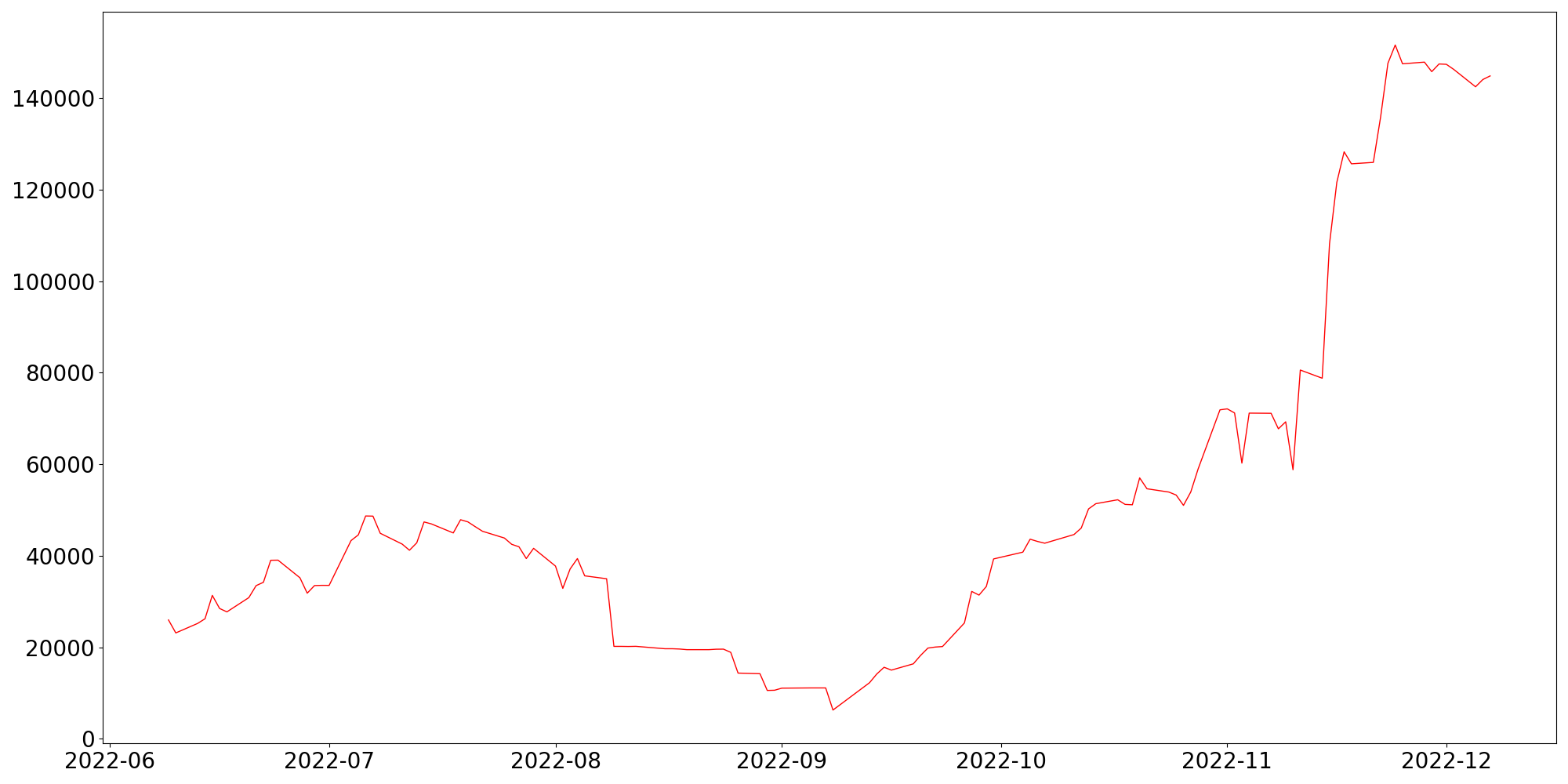 [ - : 실제값(종가) / - : 예측값(종가) ]