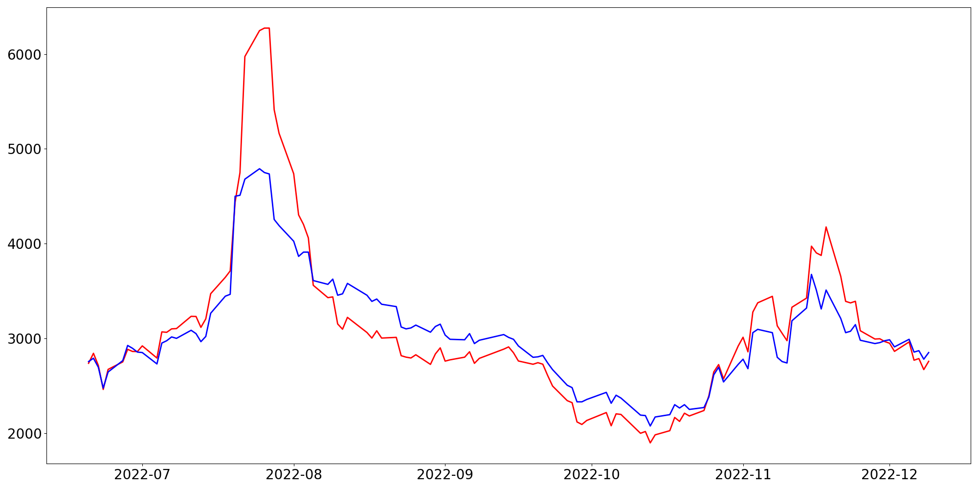 [ - : 실제값(종가) / - : 예측값(종가) ]