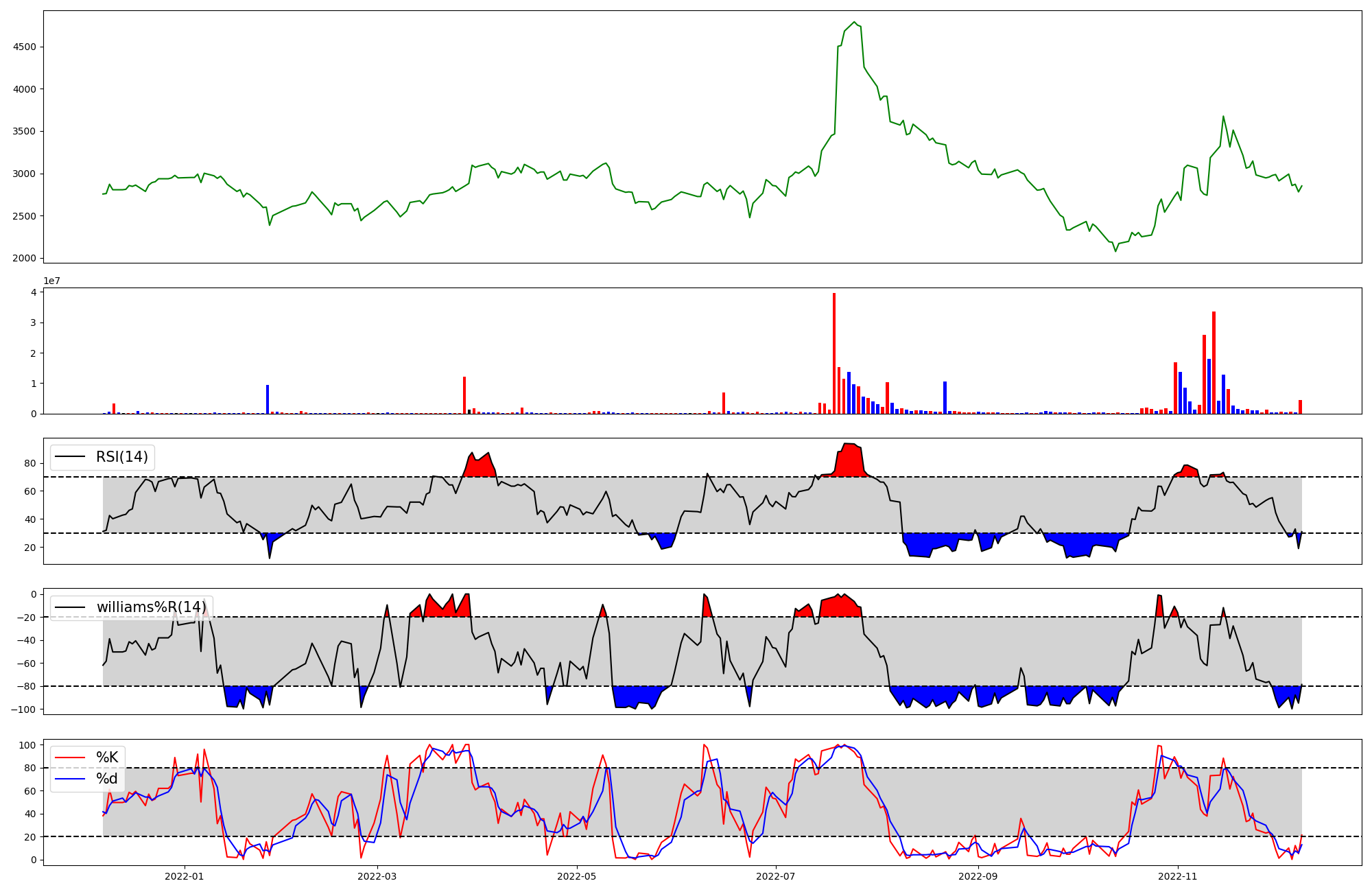 RSI | Williams %R | stochastic(%K) | |