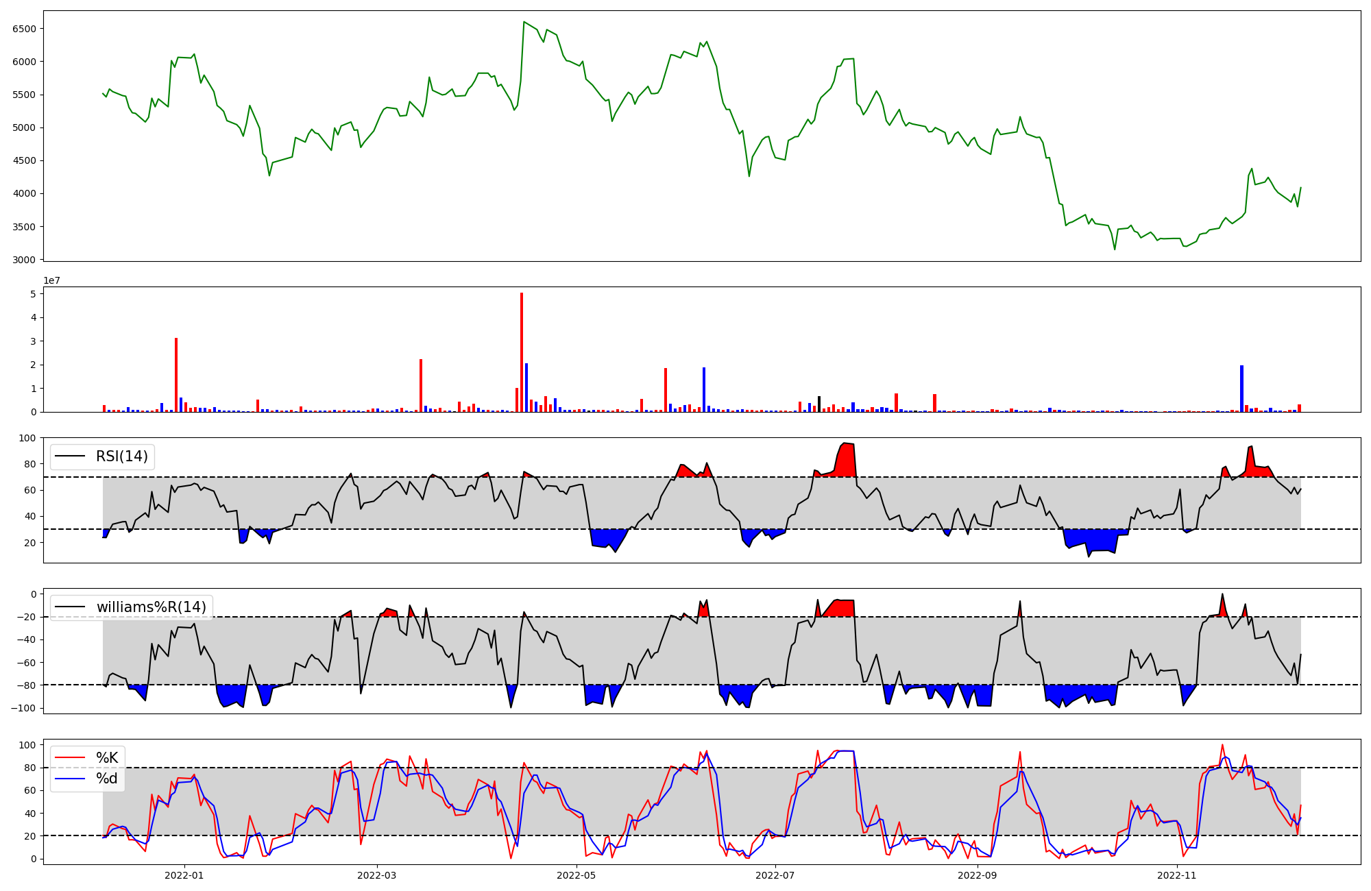 RSI | Williams %R | stochastic(%K) | |
